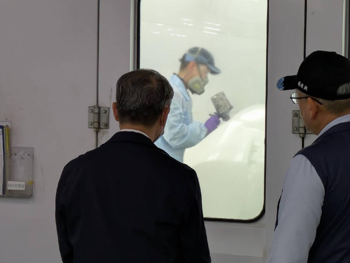 勞工局說明,因年節期間返鄉及出遊需求,汽車維修保養作業頻繁,常涉及車輛頂升、動力設備操作及油品、化學品使用,稍有不慎即可能造成勞工受傷。因此陳瑞嘉局長一早就前往國都汽車新莊廠,在副總經理陳浩立的陪同下,瞭解汽車修護業不同工段的底盤、輪胎、鈑金、烤漆作業區。陳局長除了瞭解整體作業SOP,也關懷勞工使用防護用具情形。
