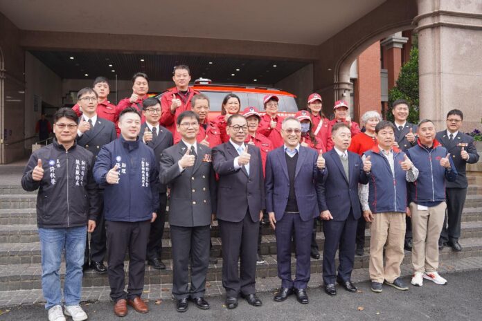 新竹縣政府消防局今天(28日)於新竹縣政府舉辦消防救災車捐贈啟用典禮,由副縣長陳見賢親自到場主持、致謝,「常宏興業股份有限公司」董事長王聰明先生親自出席,現場亦有民意代表、消防同仁到場觀禮。陳見賢非常感謝王董事長添購車輛,並贈予消防局第一大隊山崎分隊,讓消防救災工作更添利器,民眾生命財產更有保障。