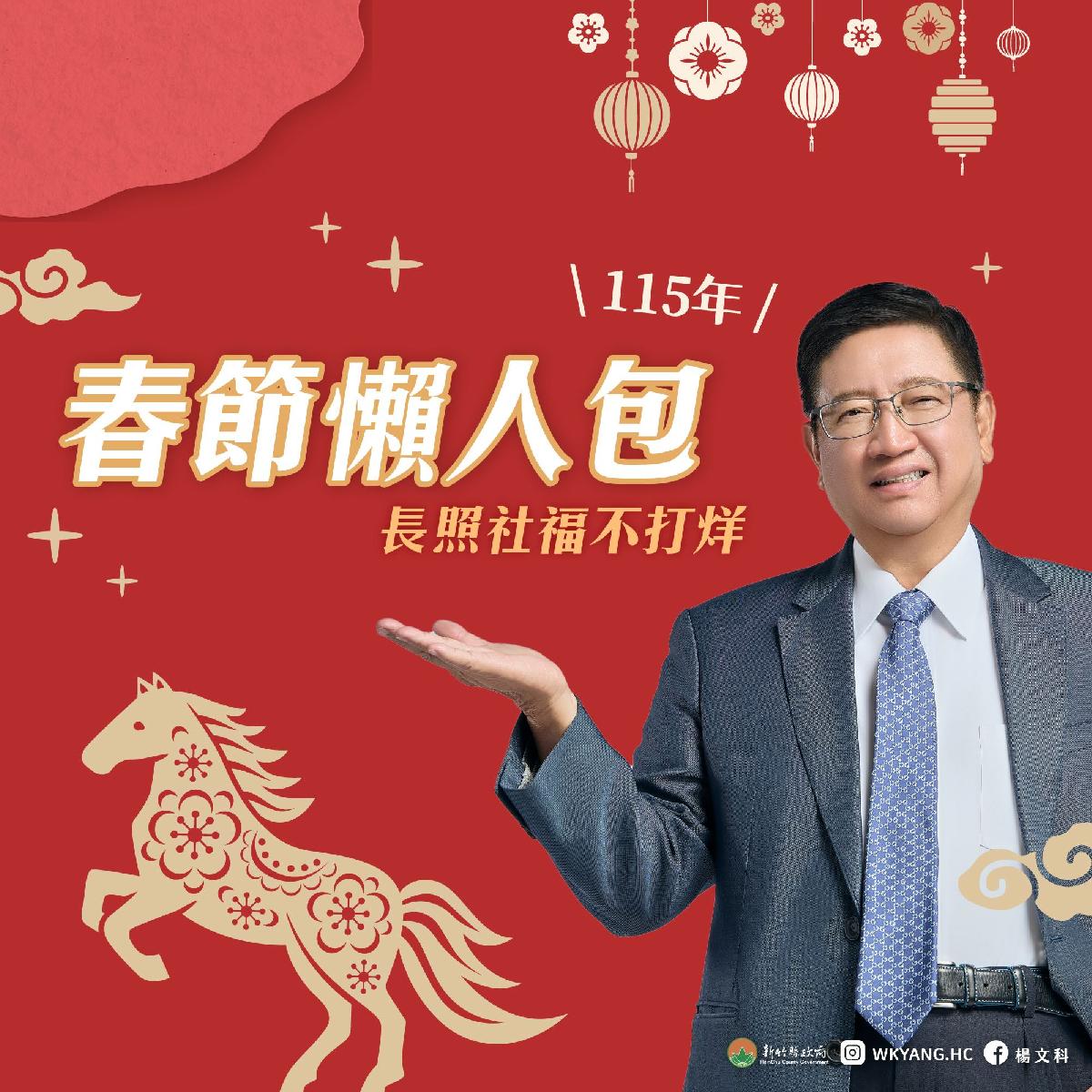 新竹縣長楊文科指出,新竹縣高度重視高齡友善政策,115年春節連假期間(2/14-2/22)長達9天,期盼透過新竹縣長照服務不打烊,讓長者及家屬在春節期間不僅感受到年節的溫暖,也感受到政府長照政策帶來的安心與支持,共同迎向健康、有尊嚴的高齡生活。