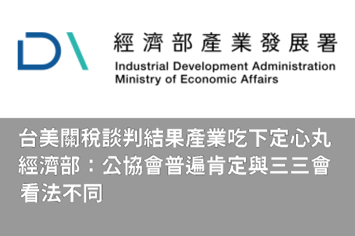 針對三三會表示,台美關稅談判結果將造成中小型出口業者及製造業帶來壓力,且大規模對美投資,恐引發產業空洞化疑慮,經濟部今(29)日表示,此輪台美談判成果受到各界肯定,國內重要的全國工業總會、工業區廠商聯合會、工商協進會及全國商業總會等也都予以支持,期盼本次談判成功可對國內產業帶來利多、尤其讓傳統產業得到助益,扭轉談判前台灣稅率較高之處境,使台灣可於相同基礎與其他日韓等競爭對手一同競爭,提升我國中小企業及傳統產業對美出口競爭力。個別產業部分則有電電公會(TEEMA)、機械公會、工具機公會、鋼鐵公會、紡織業拓展會、藥師公會全國聯合會及彰化水五金協會接受媒體採訪皆表示,15%關稅不疊加的談判結果,讓廠商吃下定心丸、關稅成本明確化,且讓台灣廠商能與日、韓站在同樣的立足點競爭,肯定政府談判成效;而可能赴美投資的半導體業者及其供應鏈,如台積電、環球晶等,也都對談判結果持正面看法。綜上所述,顯見三三會看法和產業普遍性看法顯有分歧。