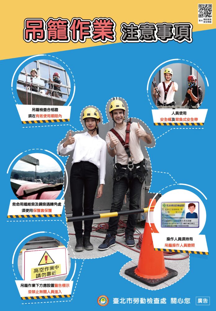 臺北市為全國首善之都,北市勞動局將持續推動高空作業安全管理,期盼透過制度落實、通報管理及現場安全意識的全面提升,進一步降低吊籠繩索作業災害發生率,共同打造更友善的職場工作環境,也讓每一位投入高空作業的勞工,都能平安工作、安心返家。