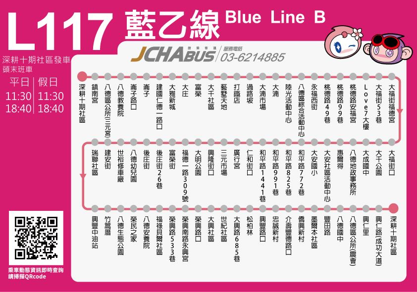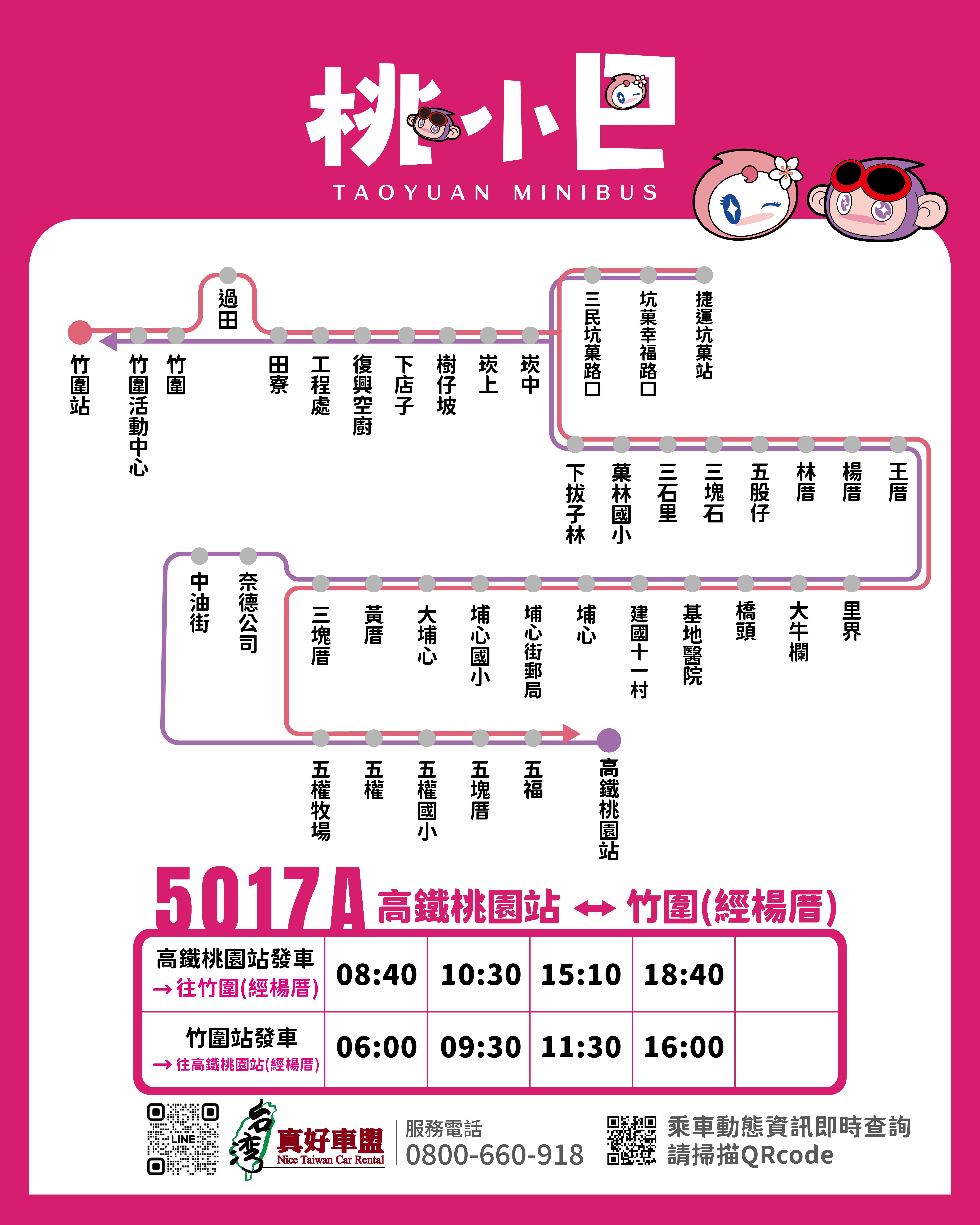本次10條桃小巴路線相關公車資訊可先至桃園市公車動態資訊系統網頁(https://ebus.tycg.gov.tw/ebus/)或下載「桃園公車」APP查詢公車路線、班次時刻與動態,以節省候車時間。
