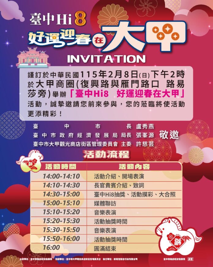 演唱會經濟持續發威,帶動百億商機!「台中Hi8」系列活動串聯8大節慶,掀起全城消費熱潮,消費登錄金額昨(1)日正式突破100億元大關。為回應全國民眾熱烈參與,台中市長盧秀燕宣布,將於2月8日在「台中Hi8、好運迎春在大甲」活動中,加碼抽出1名108萬元現金壓軸大獎;同時,為讓民眾有更充裕時間整理消費憑證,消費登錄補登期限延長至2月6日,年前把握最後機會,百萬紅包就等這一波。