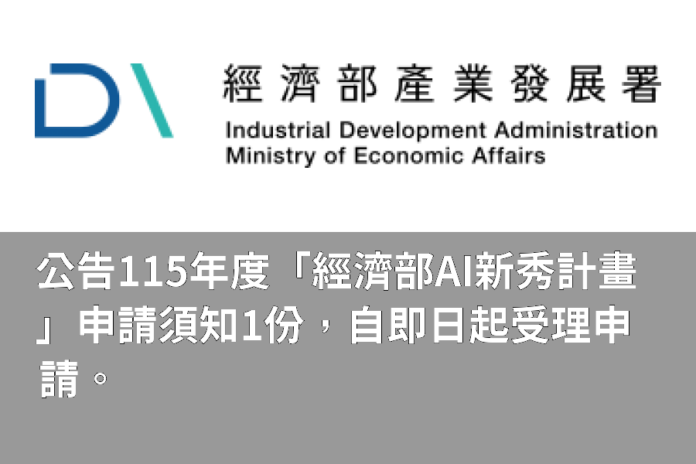 產經消費公告115年度「經濟部AI新秀計畫」申請須知1份,自即日起受理申請。 產經消費 公告115年度「經濟部AI新秀計畫」申請須知1份,自即日起受理申請。 編輯 江 秉鈞 2026-02-05 依據:「經濟部因應國際情勢強化經濟韌性辦法」。 公告事項:為因應國際情勢變化對我國產業影響,並培育AI應用人才,以促進產業導入AI技術加速升級轉型,辦理115年度「經濟部AI新秀計畫」。自即日起至115年7月31日止受理申請,申請須知詳見附件,亦可至計畫網站(http://www.italent.org.tw)查詢。 Tags經濟部產業發展署 延伸閱讀 商情 移民留學文件不能出錯!專業翻譯社解析為何文件翻譯與公證認證影響成敗關鍵 商情 正道藏心茶葉蛋–南投必吃茶葉蛋、埔里藏心蛋宅配、無蛋黃茶葉蛋 商情 頂好防水防熱工程材料行–宜蘭防水抓漏、宜蘭屋頂防水、外牆防水 商情 啟思工業–台中南區電動吊車專賣、台中天車工程、台中拖板車首選