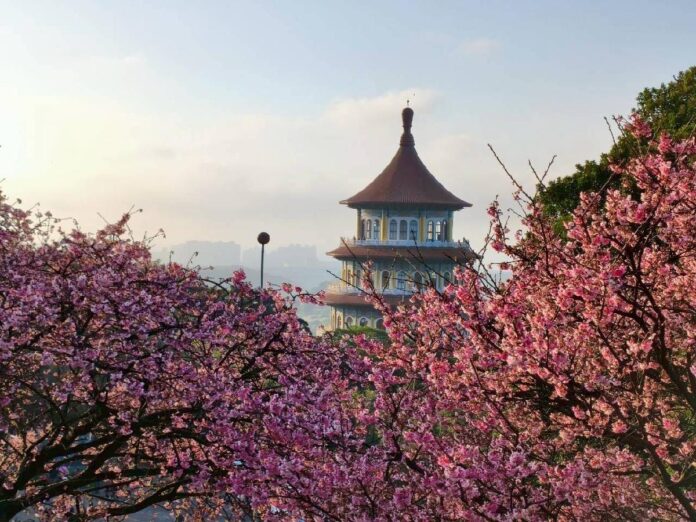 有著北台最熱門美譽的「2026花見櫻花季」夜間賞櫻活動,正式進入最後倒數階段,淡水天元宮三色櫻花在暖陽映照下陸續綻放,粉白花海點綴天元宮後山,吸引眾多民眾前來賞花拍照。新北市景觀處提醒,2026花見櫻花季活動即將於2月11日落幕,邀請民眾把握最後機會,來與幾米《閉上眼睛一下下》互動裝置打卡,參加解謎活動還能抽限量泡湯券。
