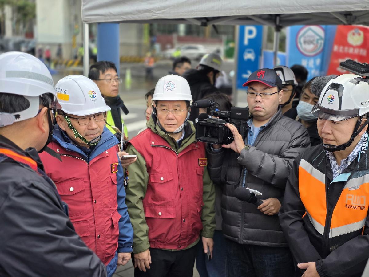侯友宜市長偕同朱惕之副市長、工務局長馮兆麟、消防局長陳崇岳、交通局長鍾鳴時等各機關人員,趕赴現場實地了解施工狀況及供水影響範圍,市府災害應變中心進駐現場並同步開設前進指揮所,全面掌握修復現況。侯市長表示,本工程位於新北大道與思源路口,為新莊地區重要道路,今日人行天橋施工過程誤挖自來水管,新北產業園區一帶供水受到影響,市府團隊與自來水公司全力搶修,降低對民眾的不便。