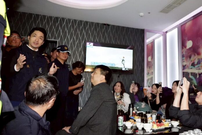 隨後,蔣萬安在警察局林炎田局長陪同下,前往錢櫃KTV忠孝店視察聯合稽查執行情形。現場由消防局針對火警受信總機及偵煙探測器等設備進行功能檢測,確認均正常運作,並進一步前往包廂區域,了解警方臨檢與安全查察流程,全面檢視場所公共安全與治安維護措施。