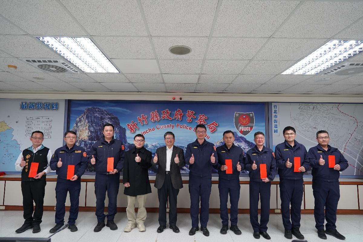 楊縣長表示,今年工作主軸在於「治安平穩、交通順暢、民眾安心」,針對詐欺犯罪持續高頻率發生,防詐工作與宣導必須持續強化!春節連假新竹縣各旅遊景點和聯絡道路勢必湧入大量車潮與人潮,請務必做好交通疏導管制及防竊,讓出遊民眾能夠快樂出門、平安回家。他期許大家以「同理心」來服務民眾,有效回應民眾需求,讓鄉親們感覺貼心、減少民怨,就是工作成功。另外,也期待警民一體、通力合作,軍用義警、民防、義交、守望相助隊及志工等民間力量,攜手社區民眾維護治安、守護家園!