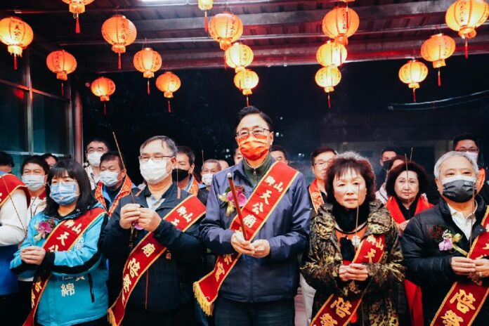 桃園市長張善政今(29)日晚間前往蘆竹山腳天公廟,出席「拜天公活動」參香祈福,並發送福袋,向市民朋友拜年。張市長表示,看到許多鄉親前來參香、拿福袋,令人相當感動,今日是正月初九天公生,歡迎大家一起來沾喜氣,他也祝福鄉親兔年行大運、身體健康、闔家平安。