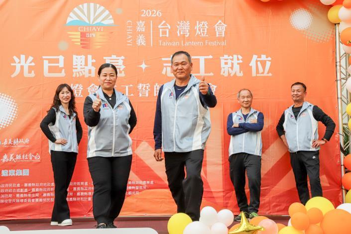 「2026台灣燈會在嘉義」將在下個月登場,為凝聚各單位志工的共識,增進服務默契及提高團隊向心力,嘉義縣政府今10日辦理「2026台灣燈會在嘉義-燈會志工誓師大會」,由志工伙伴身穿全新背心走秀,接著全體志工一同宣誓,向社會大眾宣告「光已點亮,志工就位,嘉義準備好了」。