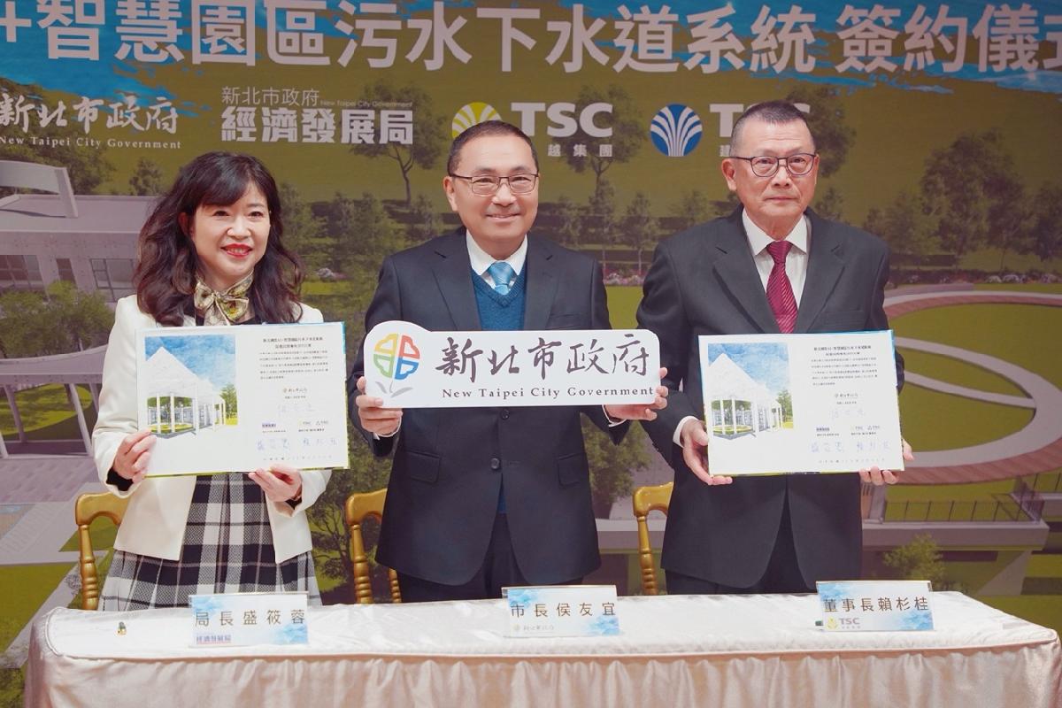 新北市政府今(11)日舉辦「新北國際AI+智慧園區污水下水道系統促進民間參與(BTO)案」簽約記者會,由市長侯友宜親自出席見證,宣告新北市於都市計畫產業園區事業污水處理系統創全國之先,正式啟動。本案投資逾新臺幣九億元,透過BTO模式引進民間專業與資源,將為新北國際AI+智慧園區建構兼顧產業發展、環境品質與永續治理的關鍵基礎建設,為AI產業聚落發展奠定長期穩健基礎。