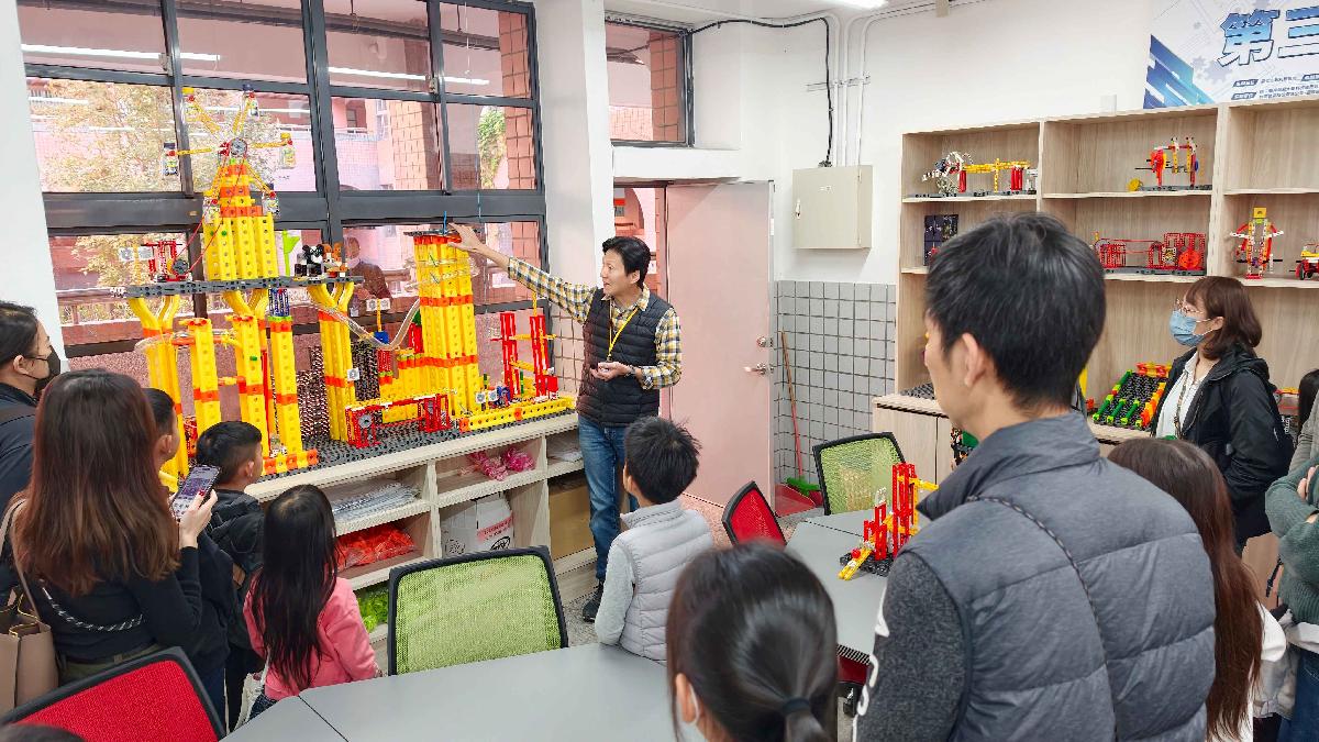 課程體驗活動同樣精彩豐富,在圖書館的「讓夢想在架上等你」活動中,透過「愛書小卡」來許願,建立由學生共同參與的閱讀文化。在烹飪教室中,師生帶領參與家庭一起品嚐現場製作的手工鬆餅,透過實際操作與品嚐,展現生活科技與多元實作課程的教學成果。活動尾聲並設計互動式Kahoot知識挑戰活動,讓學生在輕鬆活潑的氣氛中認識校園歷史、課程特色及學校亮點,提升參與感與學習興趣。活動最後,學校也準備專屬大合照紀念卡片,為每位參與者留下珍貴回憶。