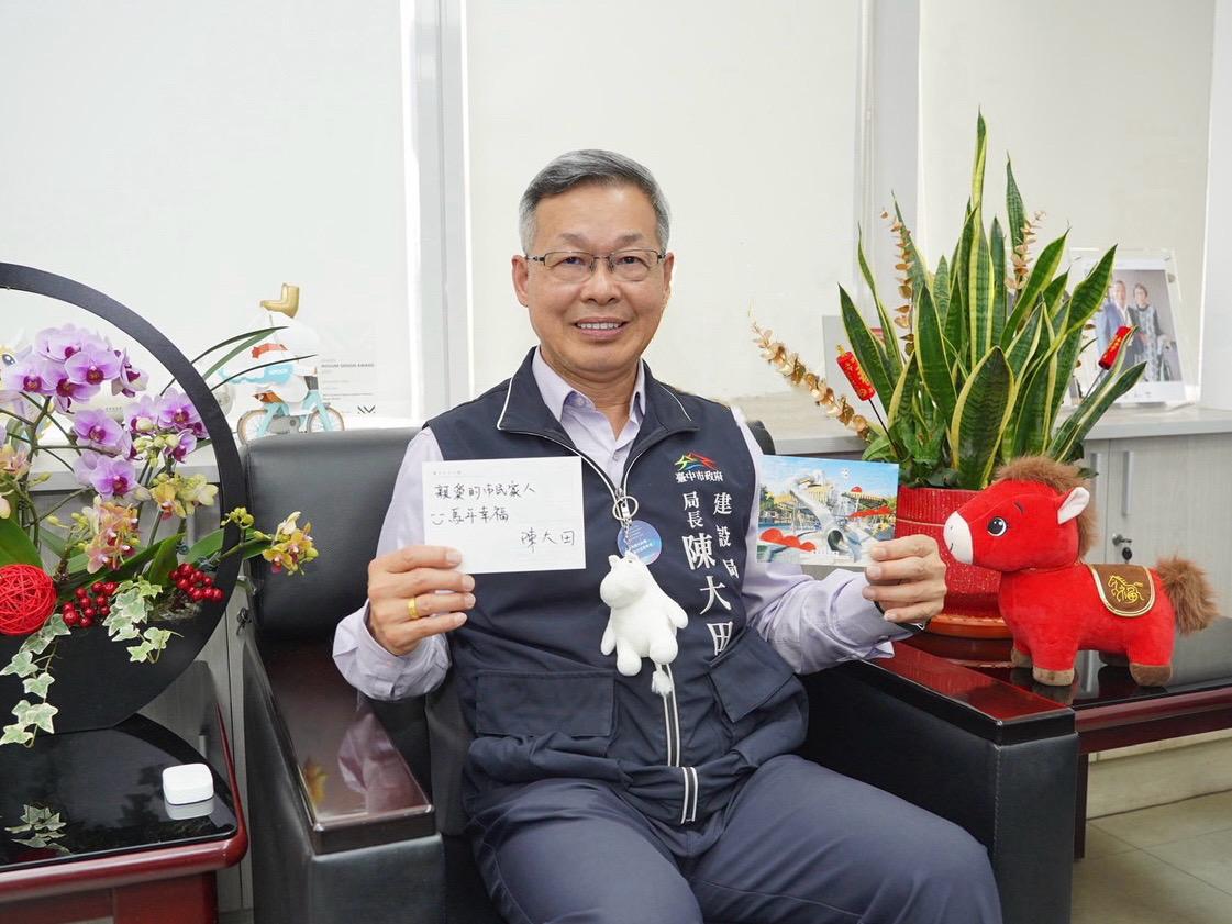 農曆春節將至,台中市政府建設局推出「從中央公園捎來祝福」活動,邀請市民與全台遊客透過春節限定明信片,把中央公園的祝福寄給最想念的人;活動開跑首日,市長盧秀燕親自寫下第一張明信片,以「平安幸福」作為第一張明信片的祝福送給市民朋友,象徵新春祝福從中央公園傳遞到每個家庭,而建設局長陳大田也寫下「馬年幸福」,向大家獻上新年的祝福;民眾只要到中央公園遊客中心,完成社群媒體指定打卡分享,即可免費領取明信片,並可由遊客中心代寄,輕鬆傳遞節慶溫暖。