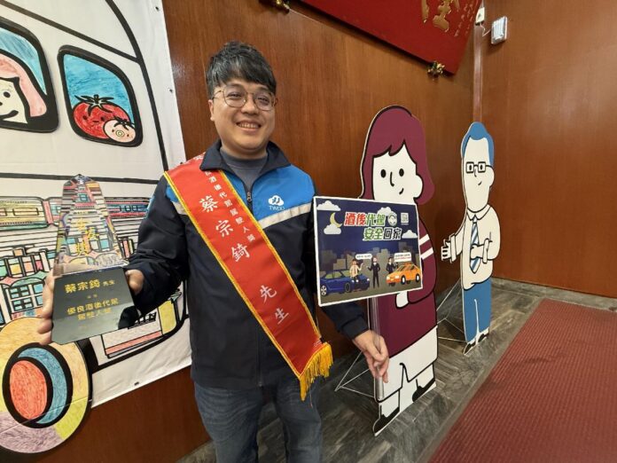台中市政府積極推動「喝酒不開車、酒後找代駕」交通安全理念,透過嚴謹制度化認證與宣導,鼓勵民眾飲宴酬酢後,將手中方向盤交給最專業的代駕人員。交通局指出,駕駛人蔡宗錡以高度專業與自律精神,於台中市投入代駕服務,4年來風雨無阻,守護民眾安全返家,榮獲交通部「金安獎」殊榮,是市府積極推動酒後找代駕的具體成果展現。