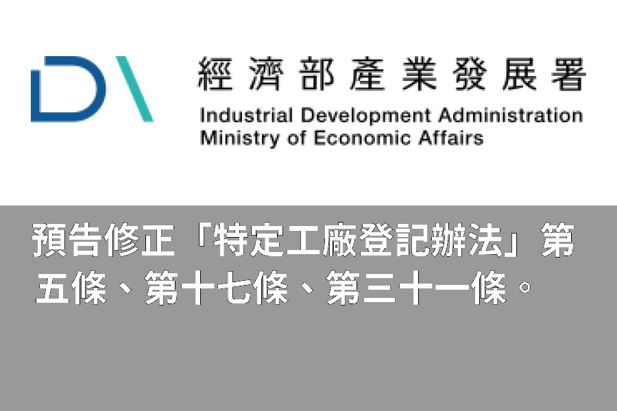產經消費預告修正「特定工廠登記辦法」第五條、第十七條、第三十一條。 產經消費 預告修正「特定工廠登記辦法」第五條、第十七條、第三十一條。 編輯 江 秉鈞 2026-02-12 依據:行政程序法第一百五十一條第二項準用第一百五十四條第一項。 Tags經濟部產業發展署 延伸閱讀 商情 移民留學文件不能出錯!專業翻譯社解析為何文件翻譯與公證認證影響成敗關鍵 商情 正道藏心茶葉蛋–南投必吃茶葉蛋、埔里藏心蛋宅配、無蛋黃茶葉蛋 商情 頂好防水防熱工程材料行–宜蘭防水抓漏、宜蘭屋頂防水、外牆防水 商情 啟思工業–台中南區電動吊車專賣、台中天車工程、台中拖板車首選