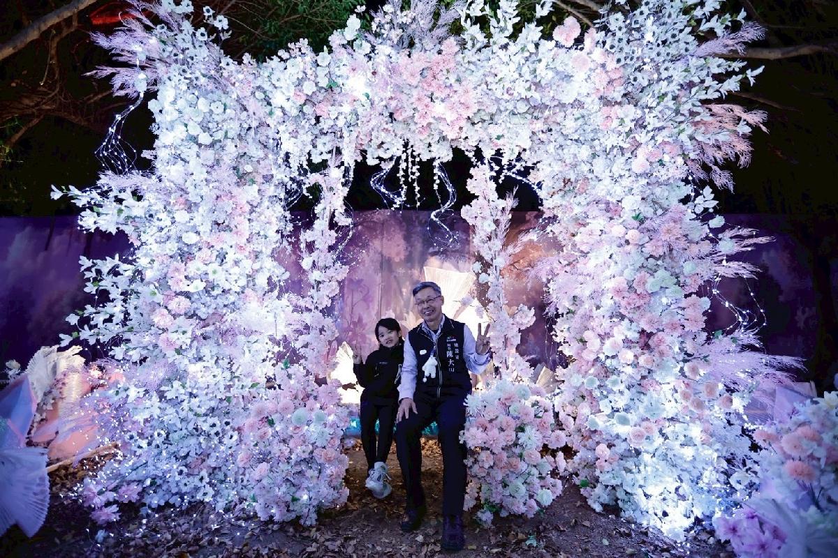 陳局長指出,「驚蟄界」以自然甦醒與生命重生為敘事主軸,燈區透過聲光科技、裝置藝術與情境式場景設計,規劃「浮幽森林」、「聖獸語林」與「瑪雅神域」等多重主題場域。民眾行走其中,彷彿穿梭於光影流動的森林秘境,在探索途中將發現一艘擱淺千年的「綠色方舟」。巨大船體靜靜佇立林間,藤蔓與枝葉悄然蔓延進船艙,燈光與霧氣交織出神秘氛圍,動物身影若隱若現,象徵希望與重生的力量,也成為燈區最具故事性的視覺焦點。