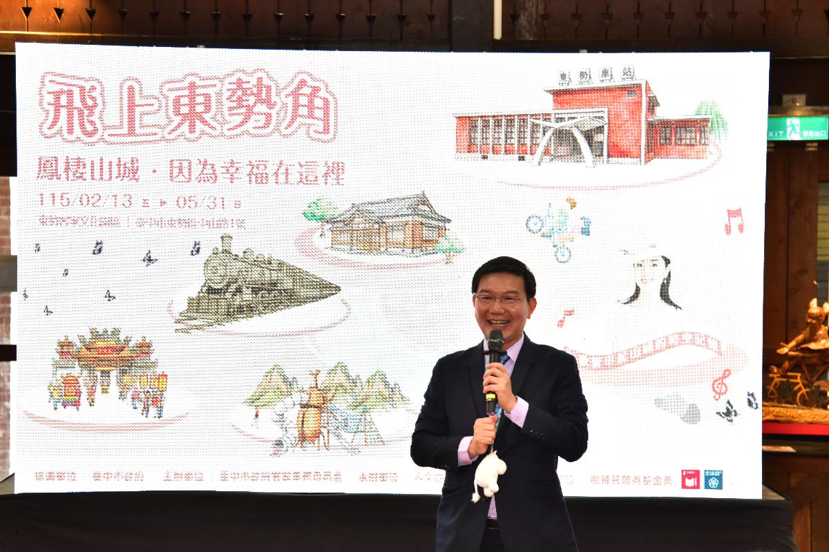 為迎接農曆新年到來,台中市政府客家事務委員會今(13)日在東勢客家文化園區攜手鳳飛飛慈善基金會,舉辦「飛上東勢角~鳳棲山城・因為幸福在這裡」特展開幕式,歡迎市民朋友走進東勢,聆聽鳳飛飛的歌聲、領略山城東勢的獨特魅力,感受客家文化深厚的人文底蘊與幸福價值。