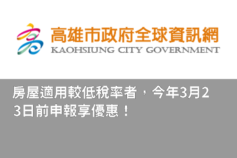 高市稅進一步說明,現行非自住住家用房屋係採差別稅率課徵房屋稅,倘符合房屋出租申報租賃所得達當地一般租金標準,或不納入房屋稅差別稅率戶數計算之房屋(如經勞工主管機關核發證明文件之勞工宿舍及其附設餐廳、經目的事業主管機關依長期照顧服務法及老人福利法規定許可之長期照顧服務機構及老人福利機構,提供其服務對象住宿之房屋等),納稅義務人也要在房屋稅開徵40日以前主動申報,才能適用較低之非自住住家用稅率,以維護自身權益。