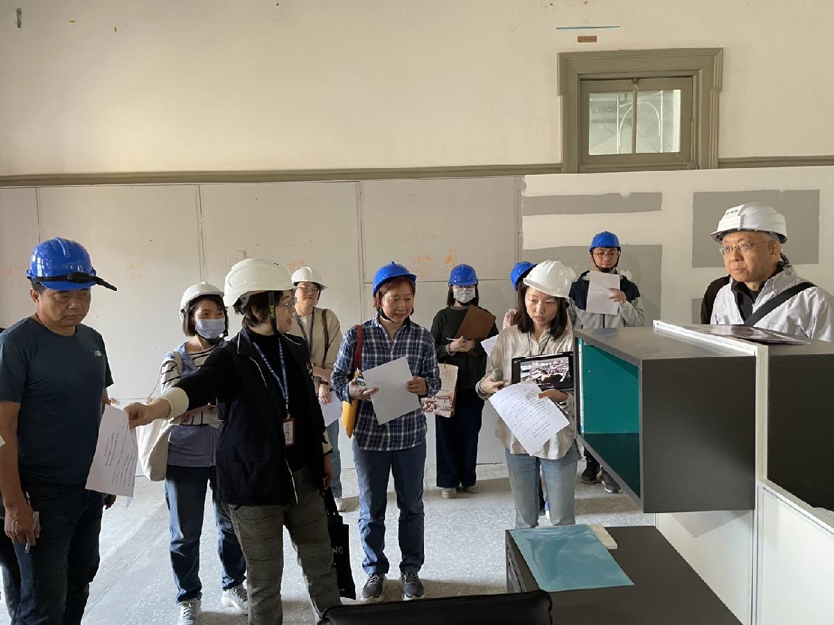 昨日視察行程由具有豐富文化資產修復經驗的郭俊沛建築師全程進行專業解說,陳局長逐一巡視內部裝修、景觀工程及機電消防系統的施作現況及施工細節,並要求春節期間更要特別落實工地安全管理,以守護這座國定古蹟的安全。陳局長於現場特別勉勵施工團隊,再利用工程已進入關鍵階段,必須在嚴守工安前提下,落實工程細節品質。