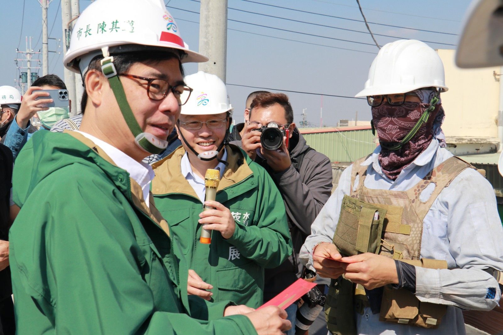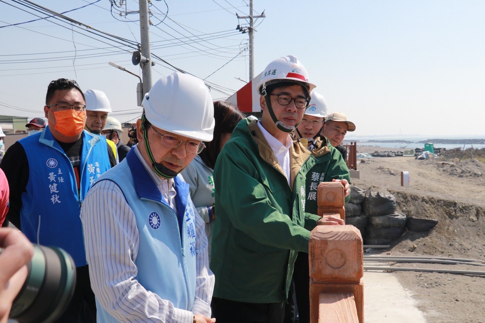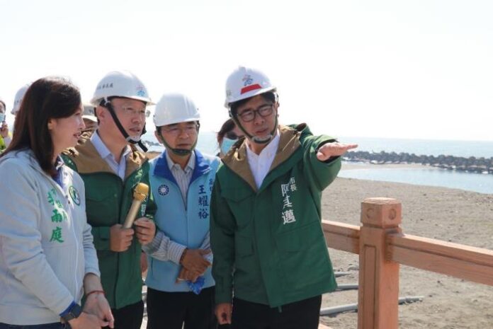 市長陳其邁及副市長林欽榮今(30)日率市府水利局團隊及林園區公所與立法委員林岱樺、議員王耀裕、李雨庭、邱于軒及黃天煌議員服務處代表、以及里長、林園漁會劉瑞卿總幹事等前往林園區西汕路汕尾海堤視察海岸線工程進度,新春勉勵施工團隊,並指示於海堤步道增加涼亭數量、以及海岸線沙灘環境整理,最後持續向水利署爭取經費,希望在113年底也同步完成中芸漁港以南至爐濟殿公園海堤景觀改造。