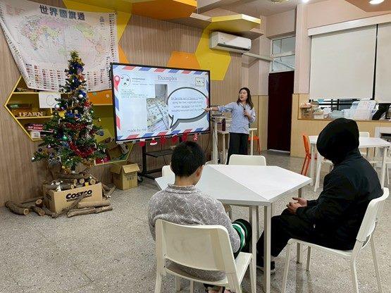 課程採用DFC架構循序引導:先從「Feel」開始,英語領域教師帶領學生蒐集生活線索與靈感,慢慢喚起對臺灣的感知—我真正喜歡臺灣的哪一個地方?為什麼那裡讓我難忘?是因為一種食物的味道、一段與家人旅行的回憶、或與同學出遊時的笑聲與風景,讓情緒先「靠近」那份喜歡;接著進入「Imagine」,學生把感受轉化為具體想法,透過學習單的引導問題,以英語書寫並梳理內容,例如描述喜歡的地點、食物或文化元素(Where is your favorite place? What’s your favorite food? Why do you like it?);再到「Do」,學生先在同儕間分享,並以英語向全班口頭發表,練習把「我所愛的臺灣」說給別人聽,課程也提供口語表達的鷹架,協助孩子把想法說完整、說有理由;最後進入「Share」,在充分感受、書寫與表達之後,教師再向學生說明此次跨海交流的意義—「把你最喜歡的臺灣介紹給日本朋友」,於是孩子帶著真實情感與清晰敘事開始作畫。正因為有這一層層細緻鋪陳,每一張明信片不只是畫面,更是孩子用感受、語言與創作共同完成的一段文化自我介紹。
