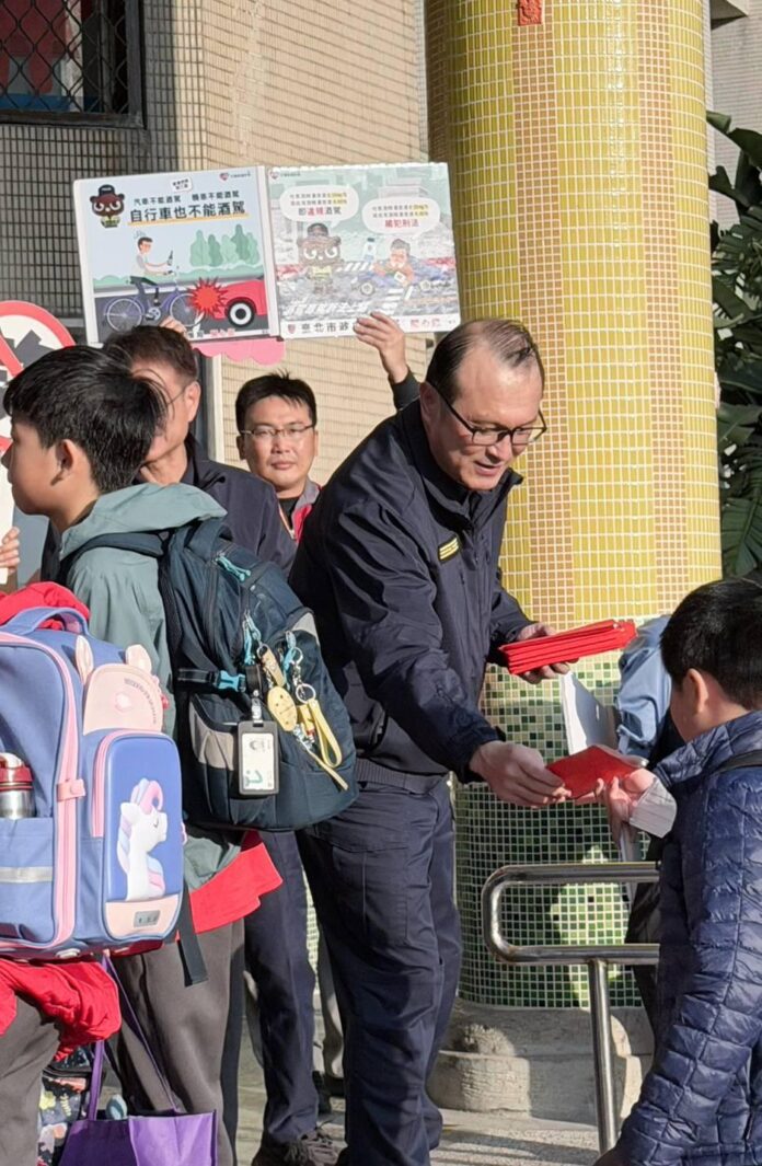 南港區玉成國小等7處小學位處交通要道,南港分局於今日7時至8時派員於各小學門口加強疏導,並請線上勤務人員加強周邊路況查報,如遇有壅塞時,立即啟動交通快打,以迅速應變交通打結情形。此外,本,一同於玉成國小門口強化交通安全觀念,現場並發送紅包及宣導禮,藉此延續年節氣氛,提醒學童無論步行或騎乘自行車切勿當低頭低,隨時注意路況才能保護自身安全,另呼籲家長及用路人遵守交通規則,成為學童們的好榜樣。