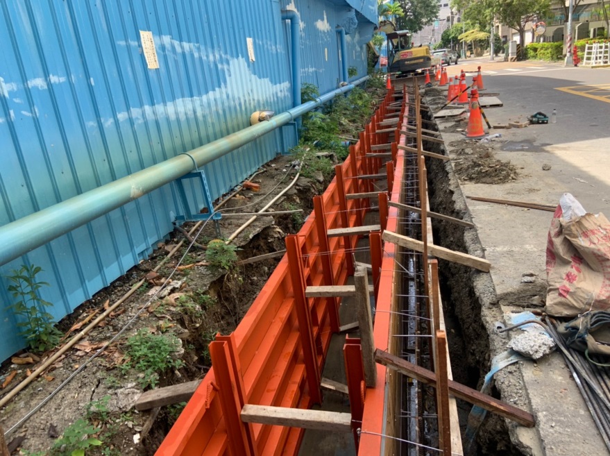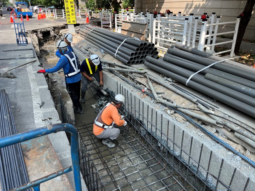 水利局說明,因極端氣候影響短延時強降雨情形越發常見,美術東八街側溝銜接美術南三路側溝排水接往青海路側溝系統,在強降雨時常有宣洩不及導致路面積水之情形,為改善排水尺寸不足及現地因排水路徑過長導致之積淹水狀況,辦理道路側溝尺寸加大及過路溝更新,從原先的寬50到60公分拓寬為80到100公分,另將美術東八街之排水改經青海路往東分流至中華一路側溝系統直接排入愛河,總改善長度達252公尺。