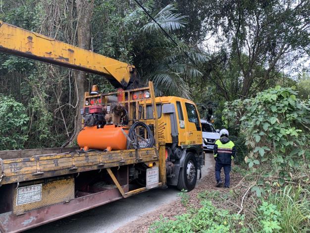 經警方聯繫附近鄉鎮拖吊車到場,協助將車輛拖起拉回道路,方排除此次驚魂之旅,林民及渠家屬感謝警方春節假期服務不打烊。