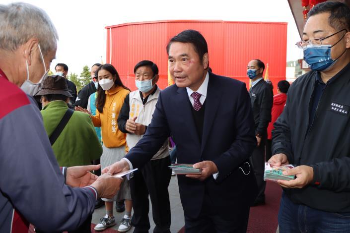 一大早鄉親熱情迎接縣長到來,並且依序排隊從縣長手中接下可愛吉祥的兔年新春福袋,象徵一整年的好運、吉祥,不僅有民眾攜家帶眷,還有帶著孫子女的爺爺奶奶們、襁褓中的小嬰兒及孕婦、遊客們都歡喜拿到新春福袋,象徵好彩頭,感受過年熱鬧的氣氛。