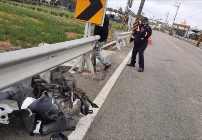 這場交通事故現場為1部普通重型機車直接撞上路邊護欄卡在護欄事故,警方及救難人員獲報後前往協助,發現機車騎士受傷連忙送醫,警方到場後,發現機車騎士17歲張姓青少年無照駕駛,不排除行經當地彎道時車速過快失控肇禍,而張姓青少年除了身上多處擦挫傷也因無照騎車被開罰;因不少民眾利用春節連續假期至苑裡鎮苑裡觀光漁港遊玩,此道路為車輛至苑裡觀光漁港重要交通幹道,來往車輛頻繁,事故車輛已嚴重影響後方車流,處理員警立即通報勤務中心派出人員協助於故障車輛後方指揮交通,本次事故前置指導當事人自行拍照、標繪及同仁即時到場協助移動車輛,始能紓解車流致未造成壅塞,提高道路安全與順暢,現場並使用苗栗縣警察局新配發之雷射式測距儀於現場依規測繪製圖,隨後在10分鐘內排除事故,現場交通立即恢復順暢,警方積極熱誠的服務精神並迅速恢復交通順暢,深獲民眾好評。