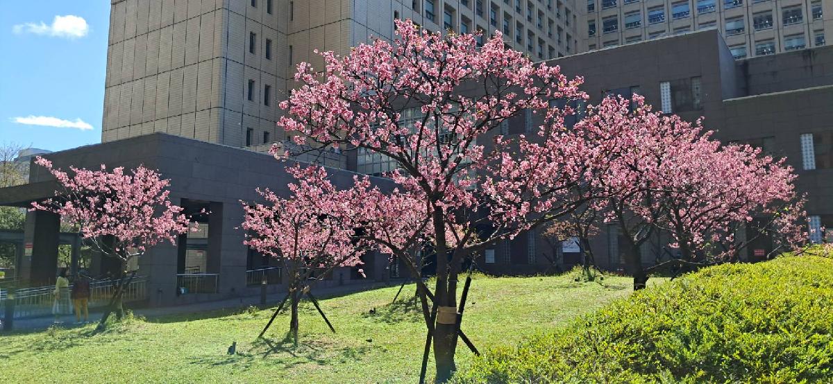 公園處表示,市府周邊綠化空間除提供市民日常通行與休憩功能外,也透過季節性花木景觀營造,提升都市環境品質與景觀層次。此次小富士櫻盛開,不僅讓民眾在通勤或洽公途中也能感受春日氛圍,更成為市中心近期頗具人氣的賞花景點。