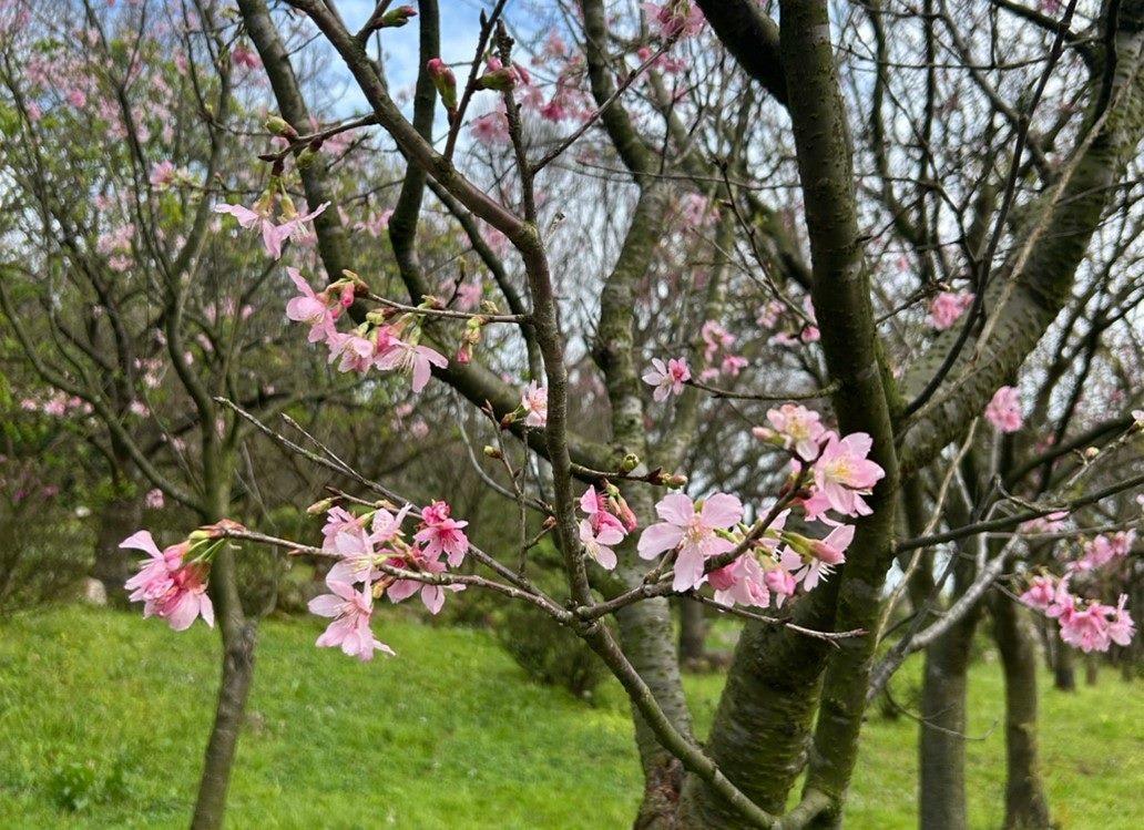 陽明山花季期間,多種櫻花與春季花卉相繼綻放,園區小徑鋪展出層次豐富的春日景色,無論與親友同行、與摯愛共遊,或獨自漫步山間,都能沉浸於自然與藝術交織的浪漫氛圍。