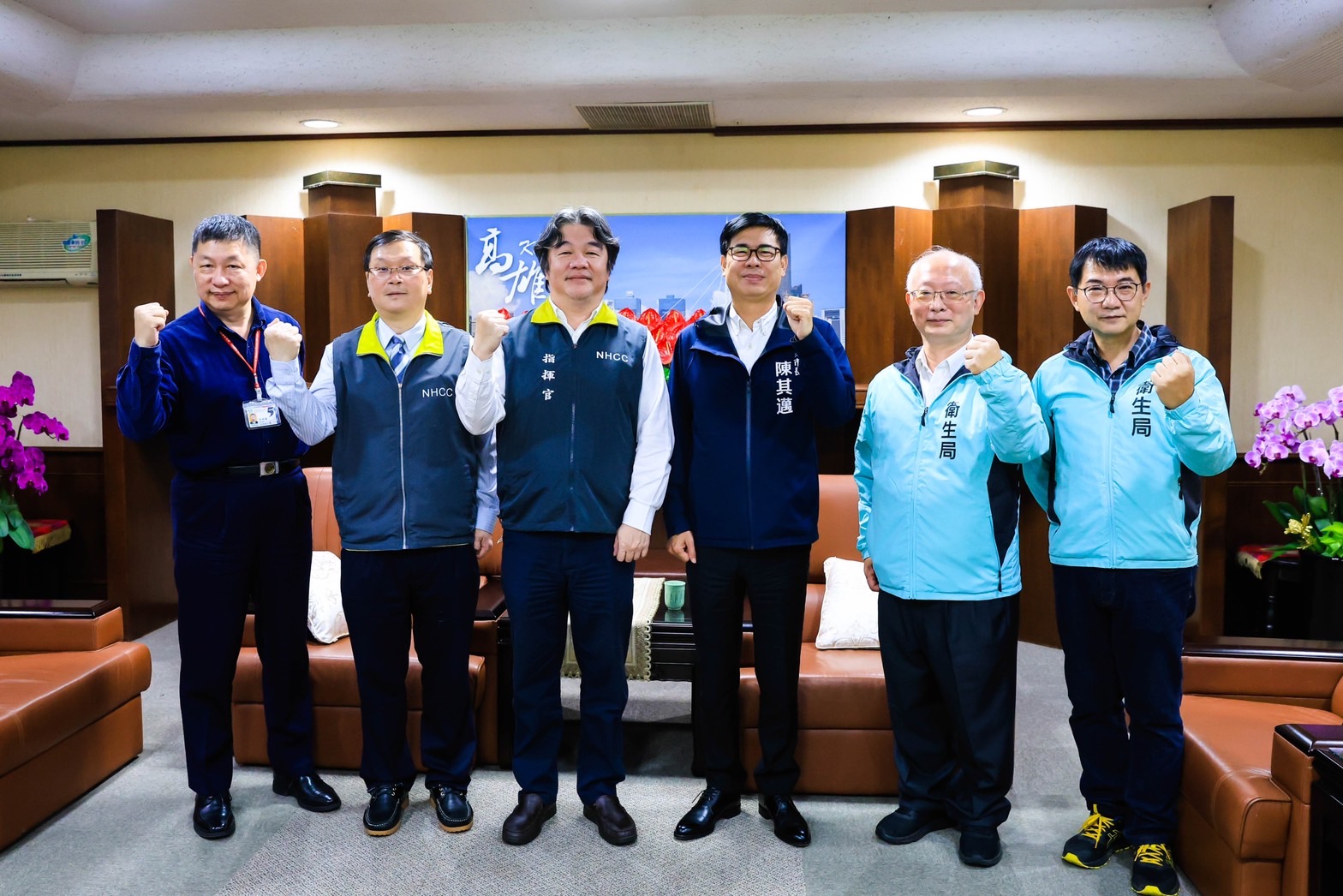 今中央流行疫情指揮中心王必勝指揮官、莊人祥發言人至高市府拜會陳其邁市長與衛生局防疫團隊,就防疫事項交換意見。中央肯定高市府團隊在催種與防疫上努力;高市府亦感謝中央支持地方防疫事務,隨疫情漸趨流感化、社區化,未來面對鼓勵追加劑接種、與關注高風險族群健康,仍須攜手合作防疫策略,恢復疫後生活如常,並著重降低染疫後風險。