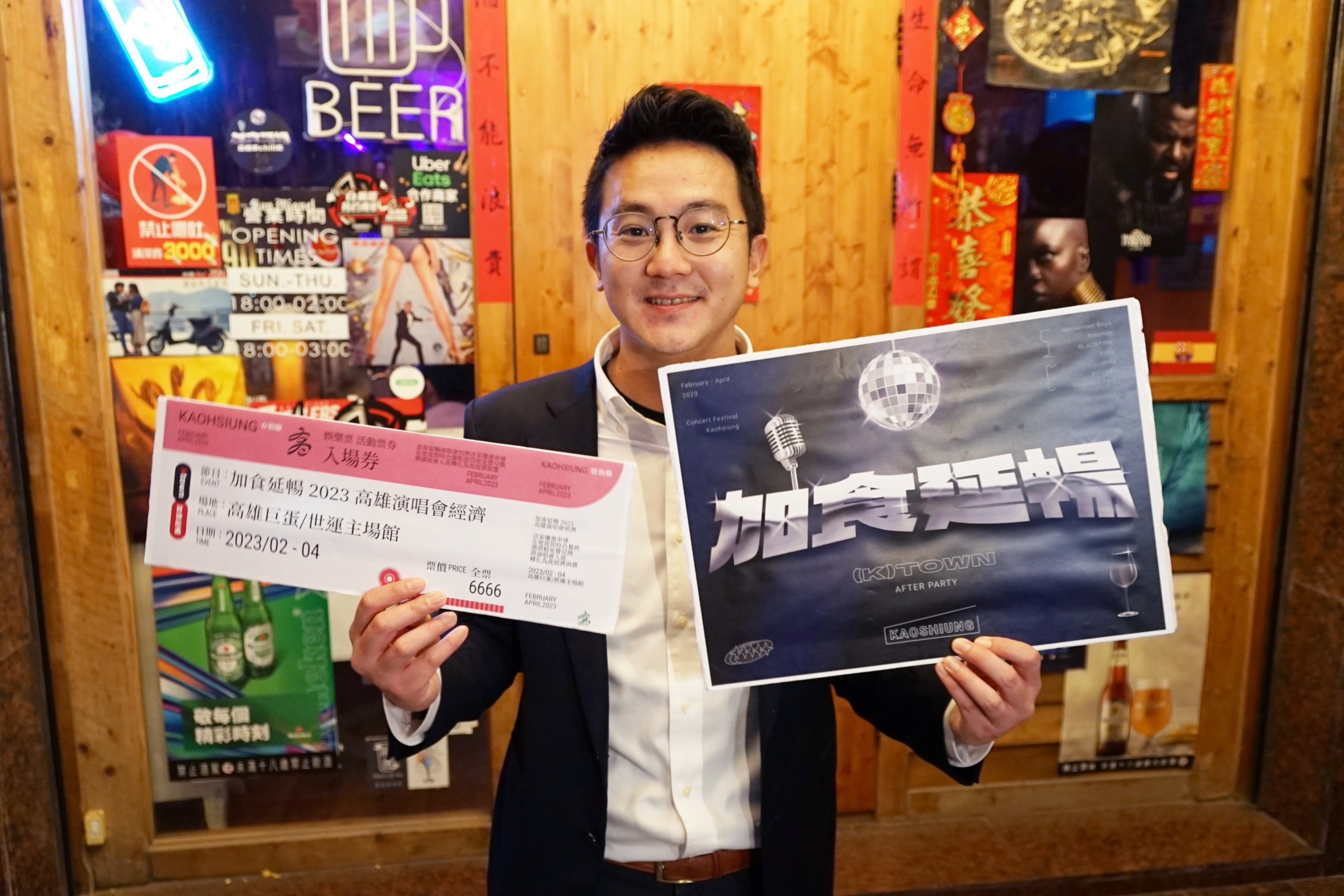 關心歌迷在合作店家消費狀況,經發局長廖泰翔昨晚欣賞演唱會後,特別前往巨蛋附近的咖啡酒吧消費,並兌換店家提供的特色調飲。他受訪時表示,稍早與全場歌迷一同回到Y2K時期,嗨唱新好男孩招牌曲「Everybody」,同時不忘宣傳市府舉辦「加食延暢」活動,希望歌迷來高雄聽演唱會也帶來更多消費,歌迷只要保留票根到合作店家就可兌換飲料或餐點,活動會持續到4月中旬的張惠妹演唱會。