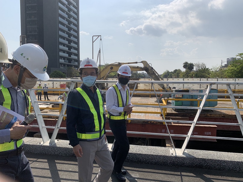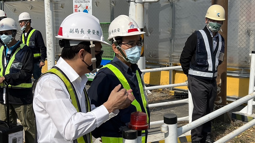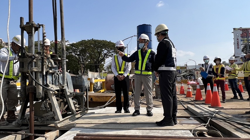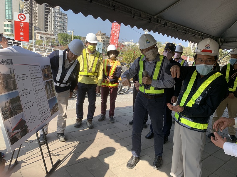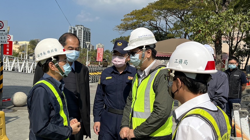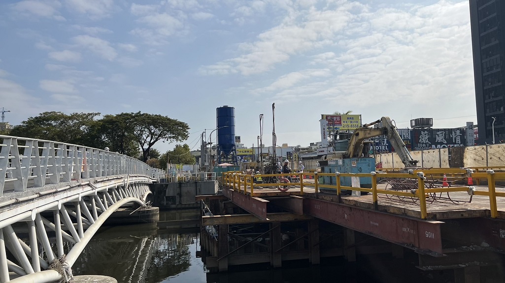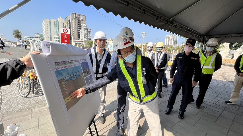 打造南高雄進城門戶三部曲中第二部曲-「前鎮媽祖港橋改建工程」,日前已完成原有橋梁橋台、基礎基樁拔除。目前正進行包含第三部曲捷運黃線通過媽祖港橋下位置地質改良施工階段,之後將進行沉箱基礎及橋墩施作等工序。林欽榮副市長今(7)日上午前往視察,除慰勞施工團隊及瞭解施工進度情形外,也特別指示施工期間務必做好交維設施並注意工安。