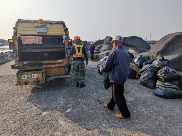• 環保局派遣垃圾車清運魚屍情形