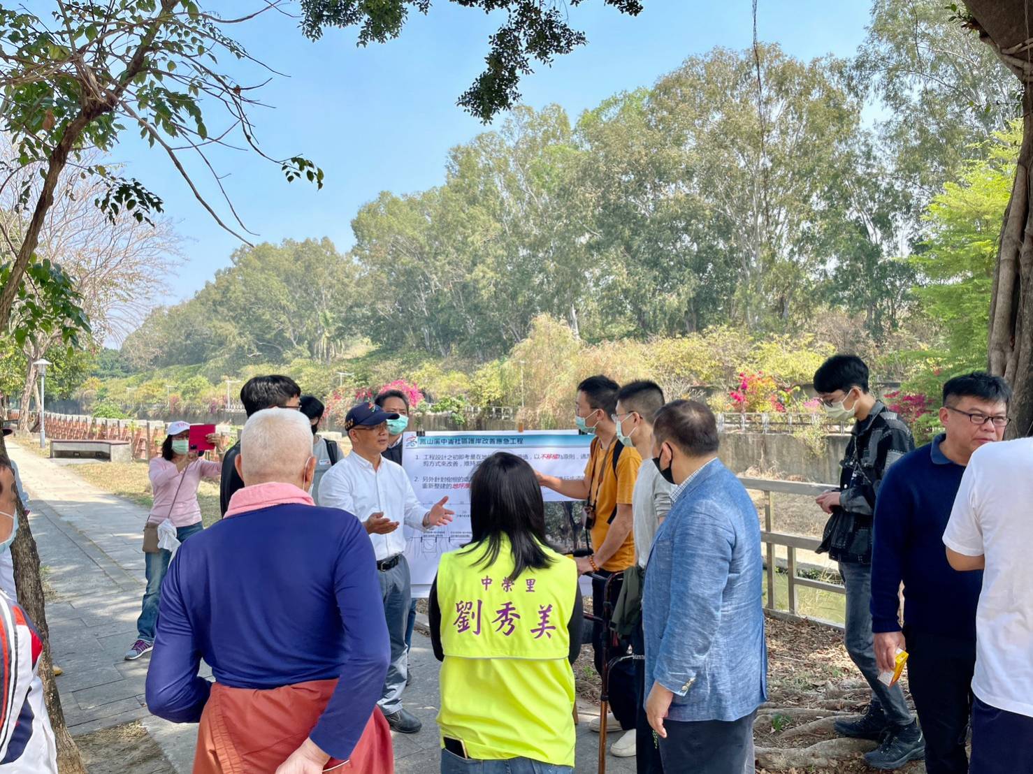 市府水利局辦理中崙路旁鳳山溪河岸人行步道整建,日前受到森林城市協會理事長質疑整建拓寬步道會切斷鄰近樹木淺根,導致樹木容易染病及傾倒,水利局於今(3/10)日上午邀集臺灣森林城市協會、高雄市政府公有樹木修剪維護咨詢會委員、當地里長及附近里民至現場進行會勘研商,會中充分理性溝通討論,在樹木保育及鋪築工法取得滿意共識,將依原計畫進行,預定於112年7月底前完成。