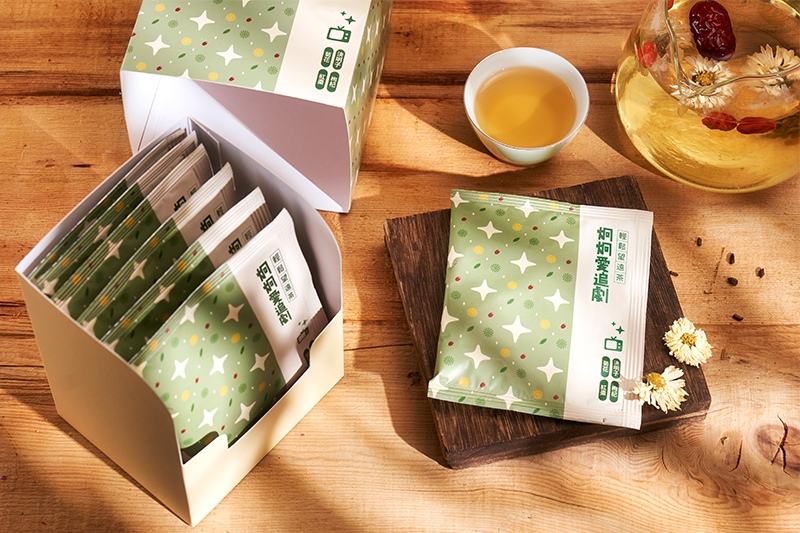 享嘉歷時兩年開發漢方茶系列商品,不僅包裝形象詼諧活潑,原料皆為安心中草藥,經過第三方單位檢驗,重金屬、二氧化硫、農藥殘留等皆未檢出,符合食品安全衛生管理法規範,包裝衛生方便,每一個茶包皆為獨立包裝,其中「炯炯愛追劇」連眼科醫師也推薦,茶包內含枸杞、菊花、決明子與紅棗,一個茶包建議沖泡350毫升溫熱水,使用保溫瓶尤佳,並且可回沖2~3次。