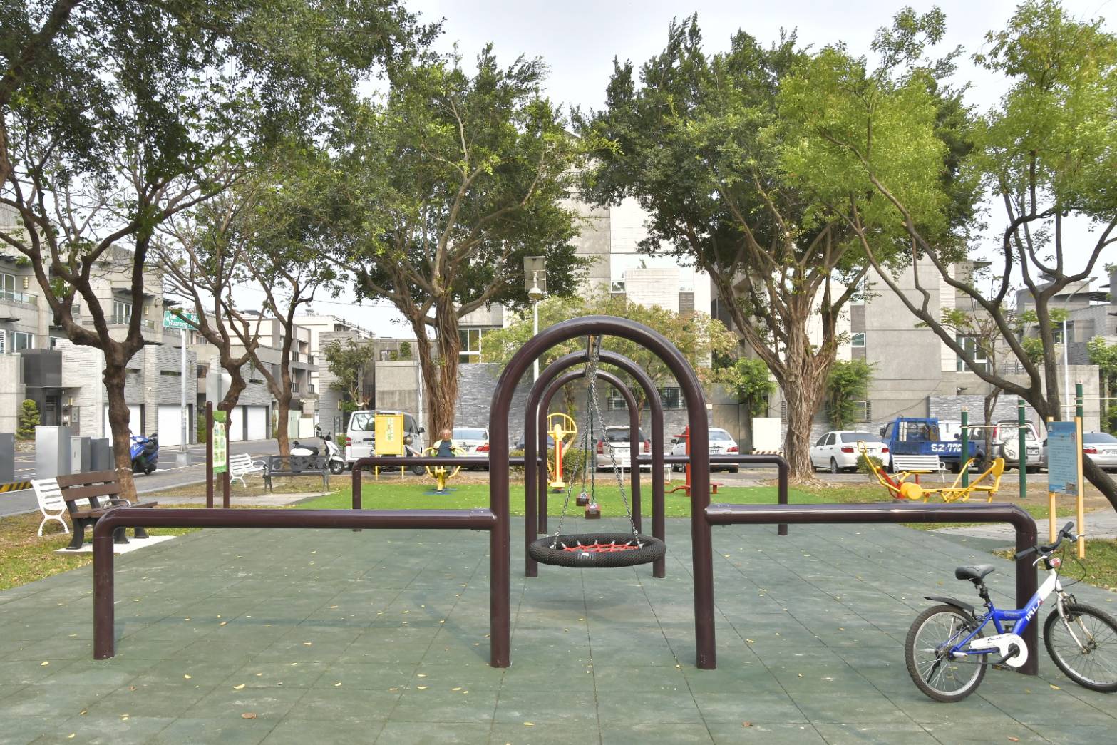 工務局說明,本次改造將華美公園進行分齡分區,分為主遊戲區、共融鞦韆區及成人體健區,並增設座椅方便民眾休憩。遊戲區主遊具使用原木材料凸顯親近自然的基調,並組合出具備多種遊玩機能的結構,包括溜滑梯、爬梯、爬網、懸吊式木樁…等等,讓小朋友可以運用不同方式盡情穿梭,創造具挑戰性又獨特的趣味體驗,此外一旁還有新設的鳥巢式鞦韆及經過維修翻新的體健設施,營造出共融友善環境。