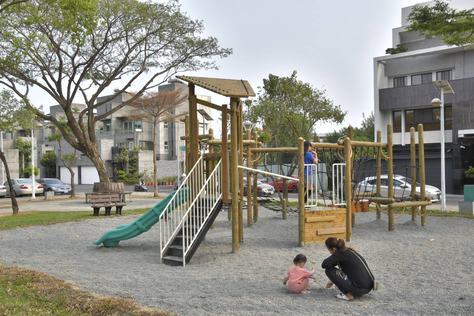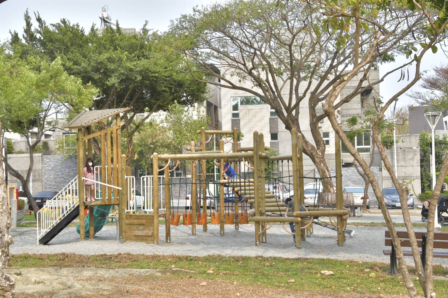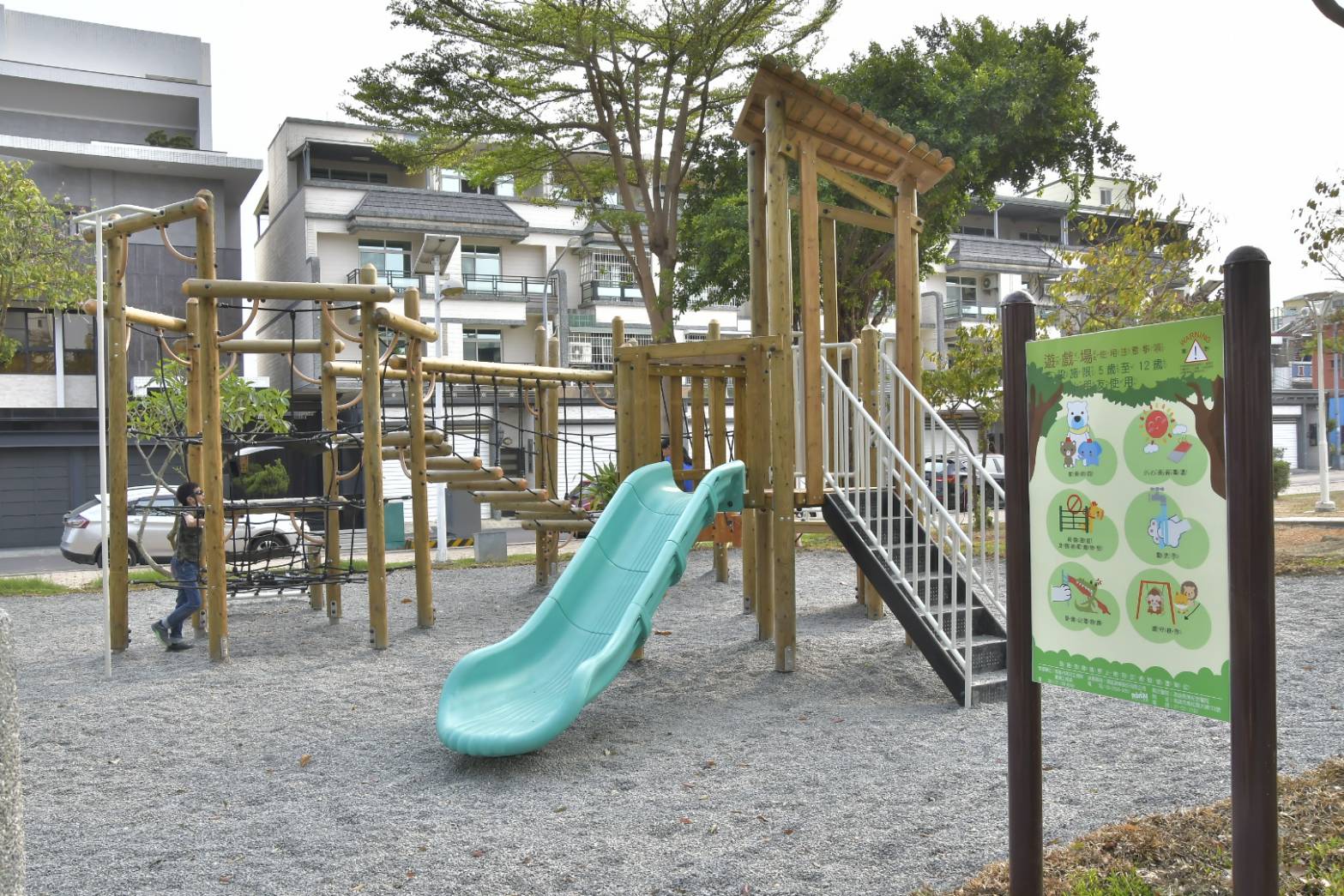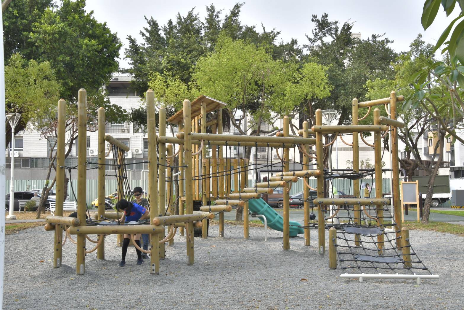 養工處補充,來公園玩的周小妹說改造前她只喜歡玩搖搖馬,經過改造後遊具變得好豐富,尤其木頭遊戲組實在太有趣了,她跟弟弟用各種方式爬上滑下,抓著鋼索跟爬網穿梭,又踩著懸吊式木樁來回移動,也可以去溜滑梯。陪孫子來的李阿公則開心地說,木頭材質的遊具很特別,跟公園自然意象「金速配」,原本他常用的體健設施也做了更新,覺得市府真用心!在工務團隊打造下,各區好玩又有趣的特色遊戲場將越來越多,全市多區特色遊戲場正接續改造,大小朋友到公園會有更多不同以往的樂趣。