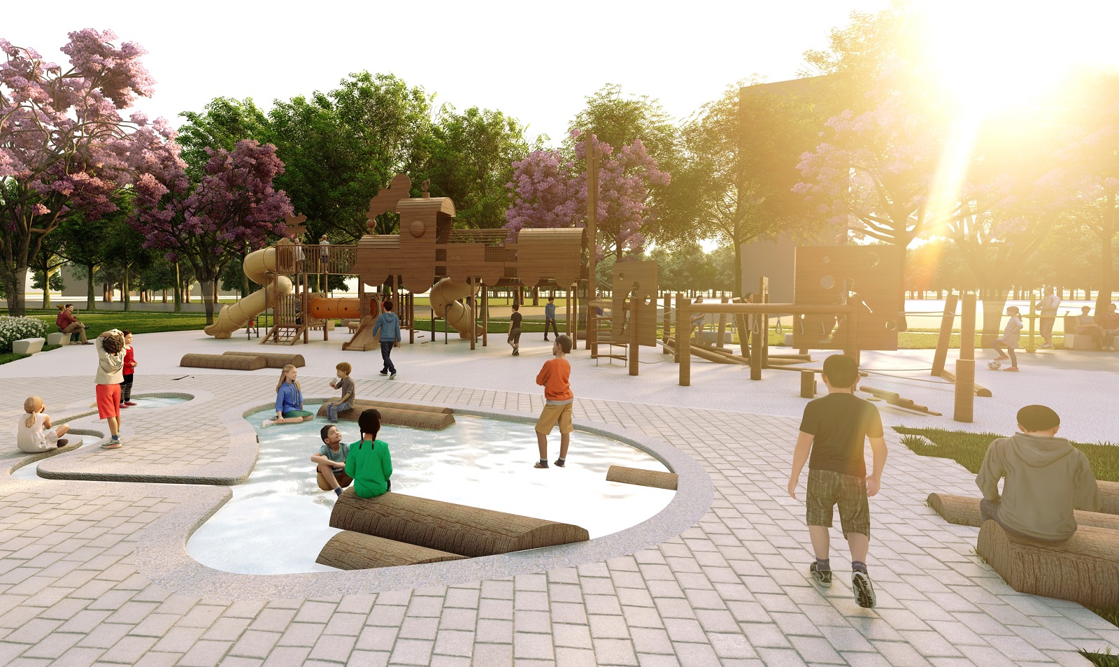 養工處補充,與中都磚窯廠相鄰的公6公園,以磚窯產業文化及孕育在地人記憶情感的愛河,作為整體規劃設計意象發展與元素的選擇,流暢的步道配合多樣化及繽紛的植栽設計,採用低調的地景設施,在視覺景觀上與相鄰保存的磚窯場互動呼應,形成豐富的休憩體驗。公32公園整建,除了改善舊有的通行環境外,特別重新打造一個嶄新的兒童遊戲場及體健活動區。兒童遊戲場運用「杉仔池」儲木空間意象,打造微形水道水景空間及運輸木材牛車意象的主題遊具,打造富主題性及舒適的兒童遊戲空間。遊戲場周邊配合既有樹群,設置樂齡體健區域,讓各年齡層的民眾都能玩得健康,提供市民全齡共融友善無礙的休憩空間。
