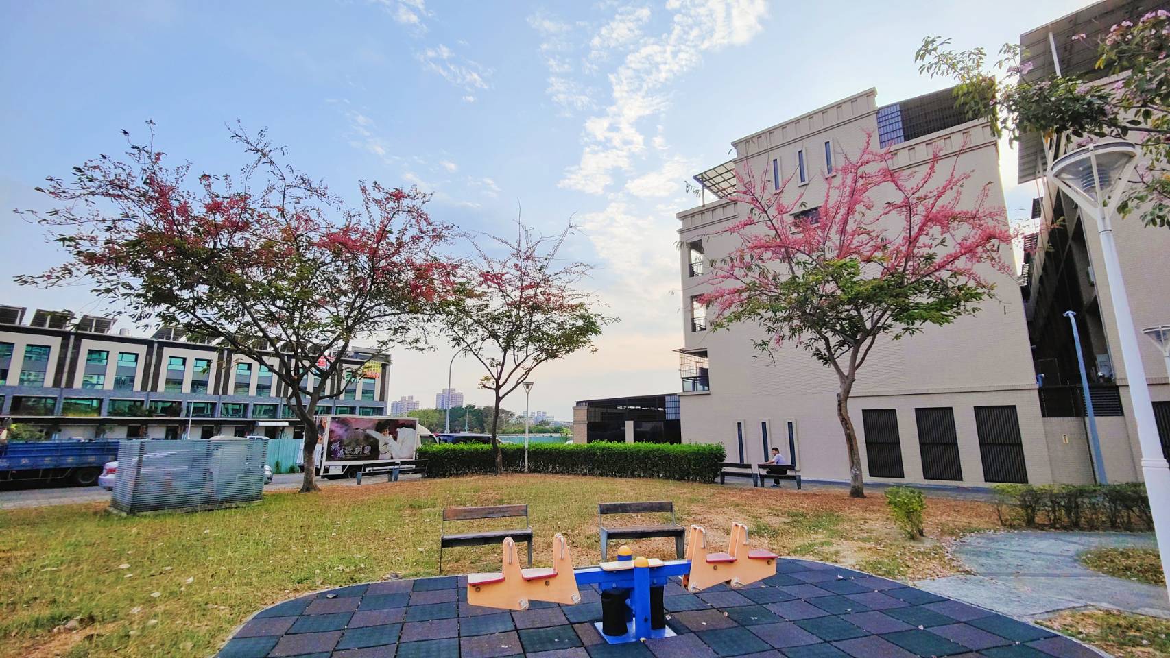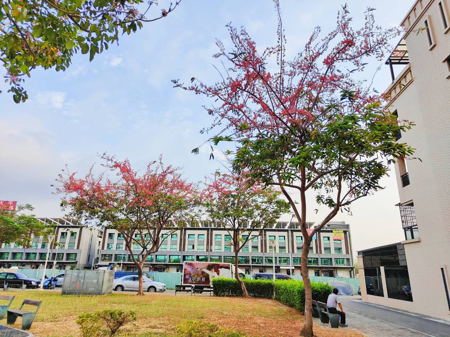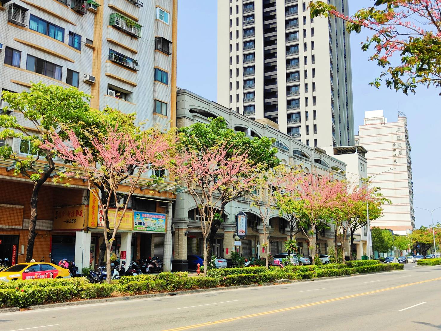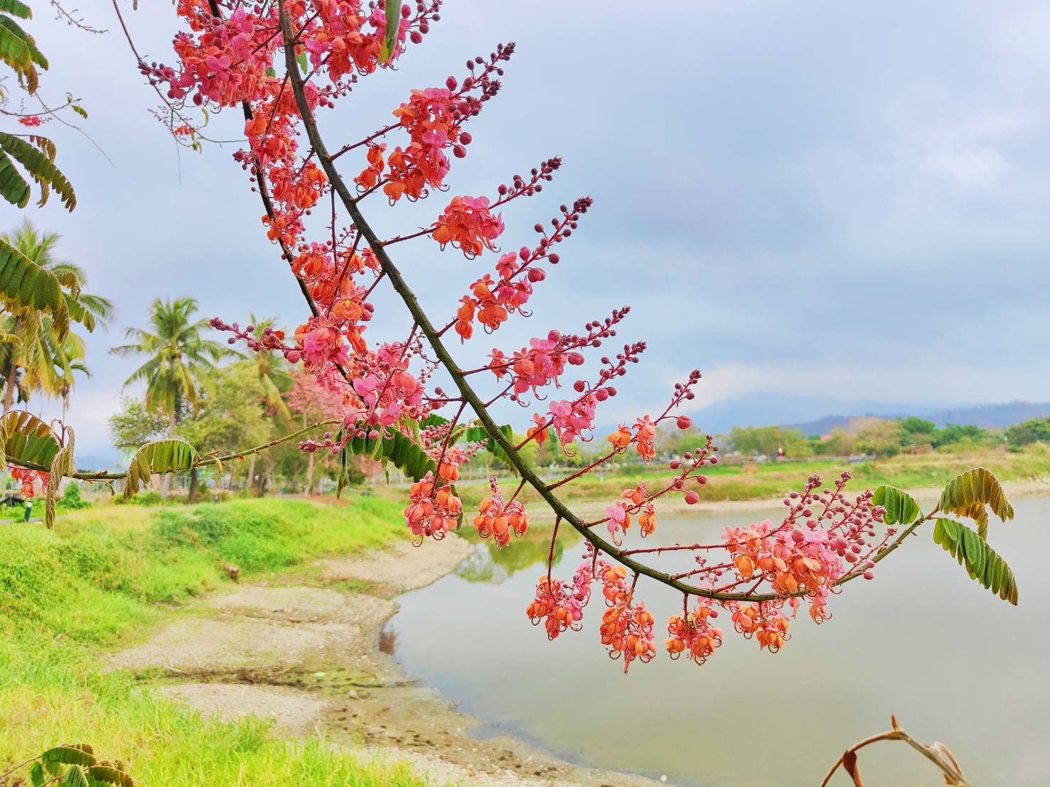 行道樹是城市景觀美學的重量級角色,市府多年來種植許多台灣原生樹種及適應南台灣氣候的開花性喬木,增添市容的繽紛色彩。春夏季節是高雄市行道樹接力開花最豐富的時節,浪漫的紅色系蘇木科家族—紅花鐵刀木現正花開中,其初開時花色為如胭脂般的紅色,之後漸變為淡紅色,最後再轉成橘紅色,有如海中珊瑚的繽紛色澤,唯美的「珊瑚雨」飄逸在微風中,交織出如詩如畫的高雄四月天。