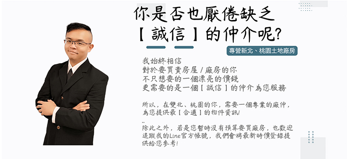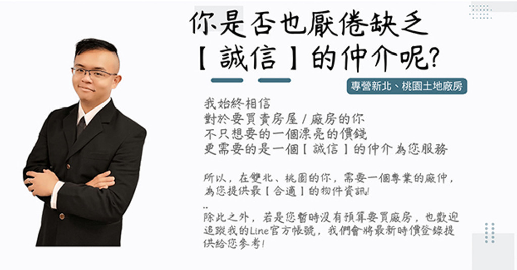 位於新北市樹林區的【不動產小又】,小又從事廠仲多年,所以經驗非常豐富,用真誠與負責的方式幫助客戶找到理想中的廠房、工業用地,過程中若有任何問題,都能以專業的角度給予您建議,也非常重視與客戶的緣分。