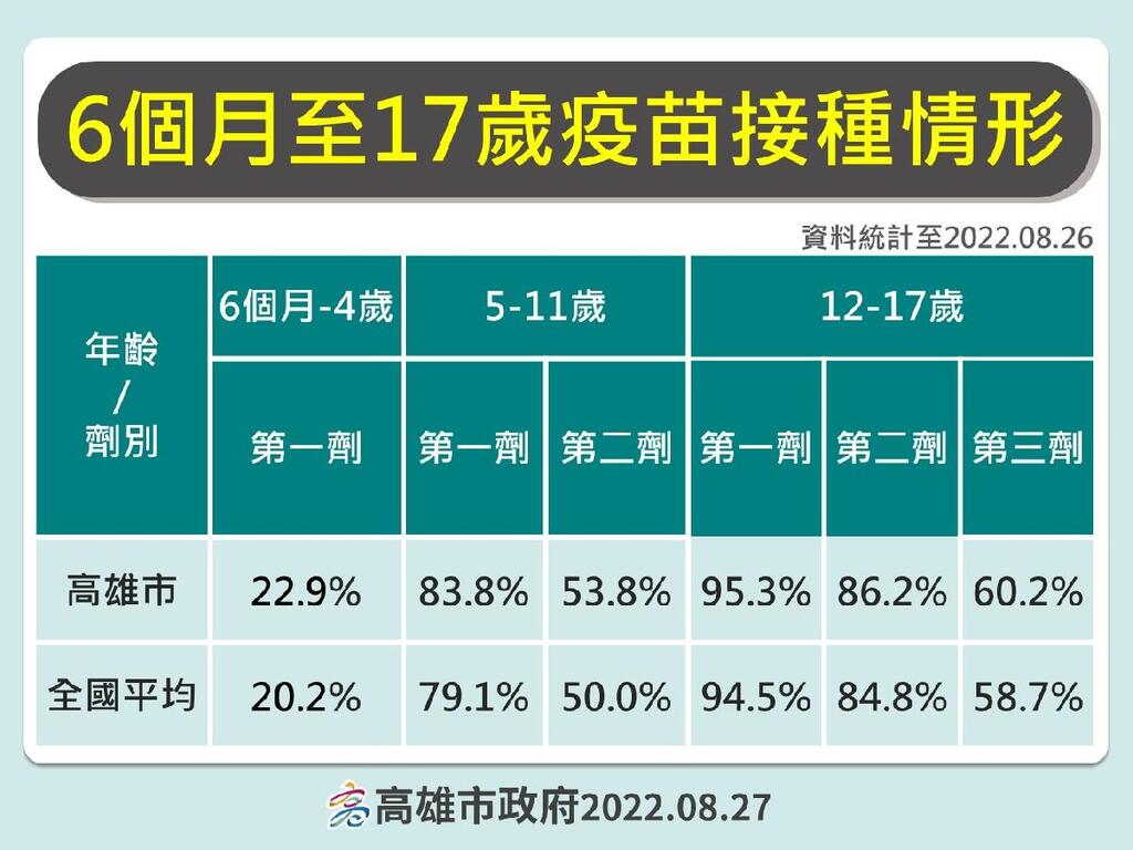 南部新聞高雄市【衛生局】8/27更新6個月至17歲疫苗接種情形