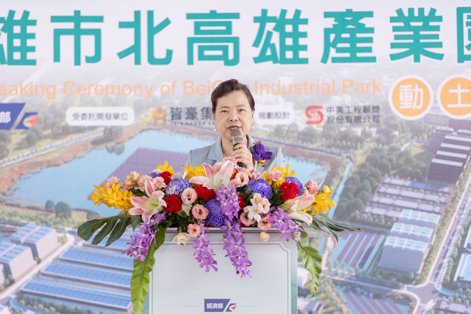 經濟部長王美花致詞時感謝行政院各部會及市長陳其邁帶領市府團隊鼎力相助,共同完成北高雄產業園區核定設置。她表示,園區預計投入46億元經費,劃分4區由南向北逐一開發,第1區預計今年5月公告受理承租, 9月交地同步設廠,將引進金屬製品、機械設備、光電等產業,全區完工後將創造逾2,000個就業機會,年產值達128億元,為北高雄的產業發展發揮擴增與外溢的加乘效益。