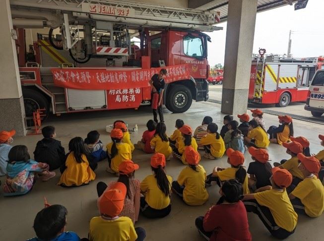 由於本次參訪時間有限,希望能將消防知識來傳遞給小朋友,期許爾後遇到災害時,能以正確的避難方式來增加存活機會。