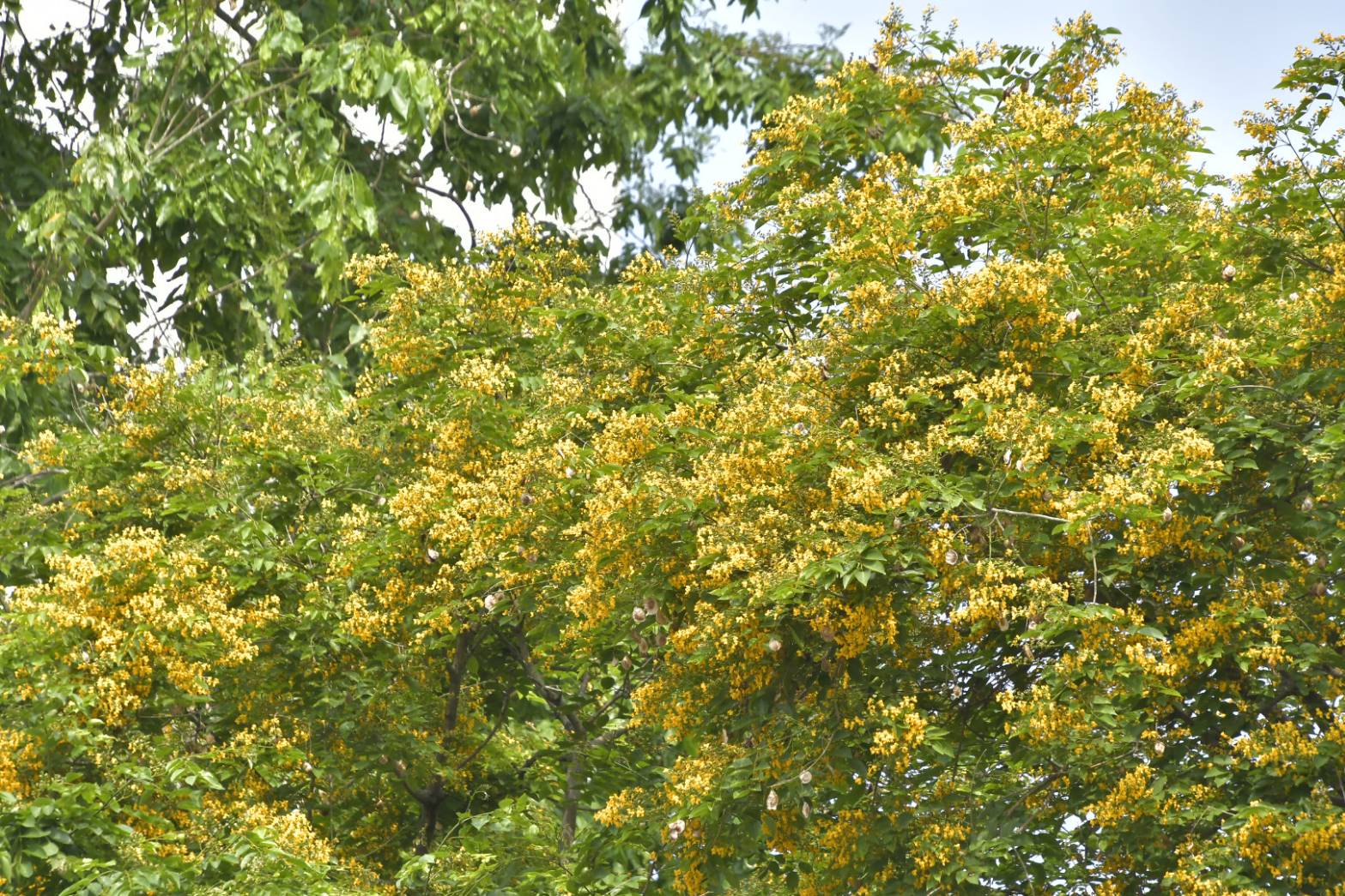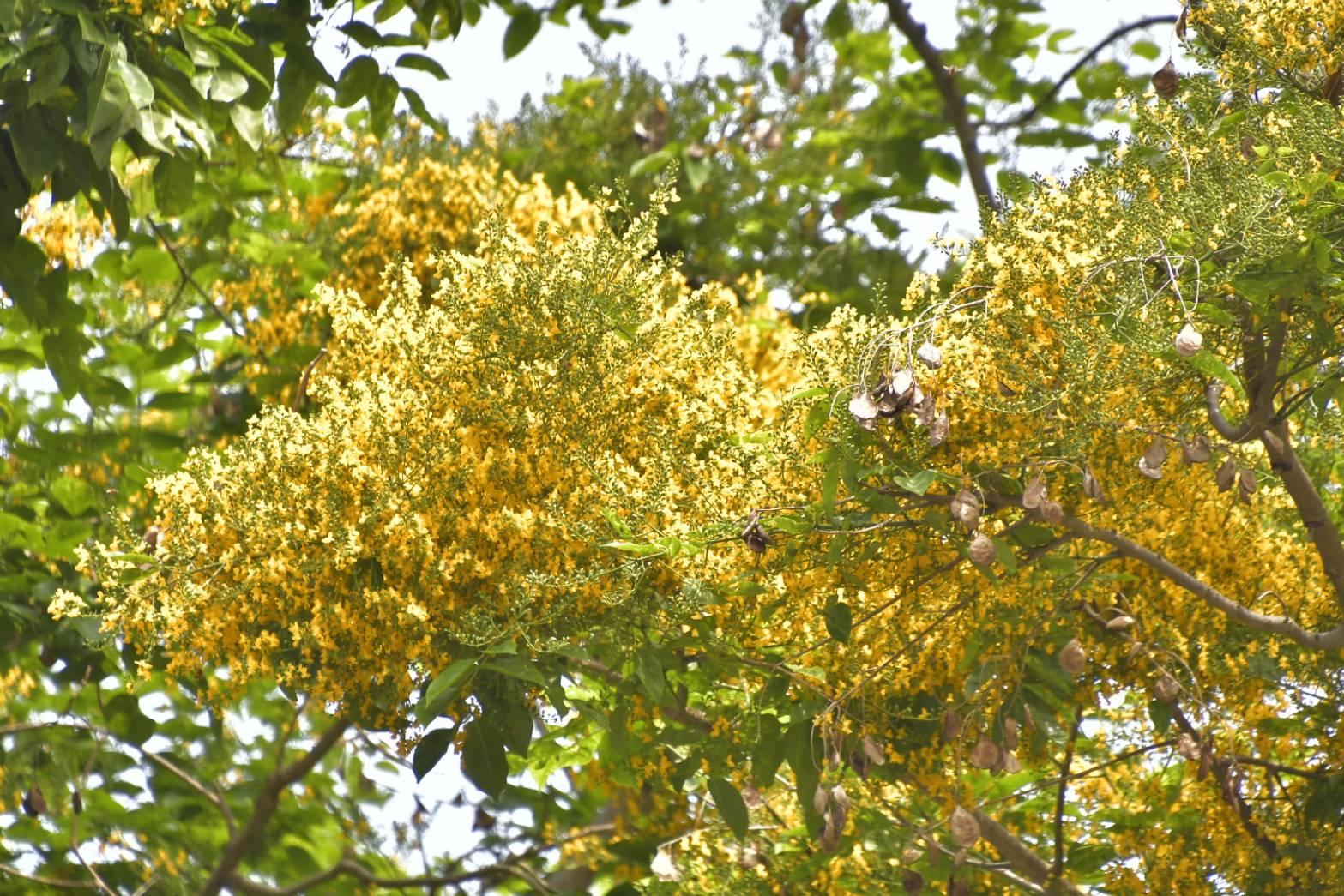 春季的行道樹漾滿詩意,街頭上開花樹種們隨著時序的更迭散發女神般的光采,入夏前夕金沙花雨般的印度紫檀已率先於三多路、澄清路、凱旋四路、新光路、九如路及大順路等,和各大小公園、綠地內一一放閃,為高雄灑上金黃的飽和色調,光芒萬丈,歡迎市民朋友駐足感受金光閃閃瑞氣千條的正能量。