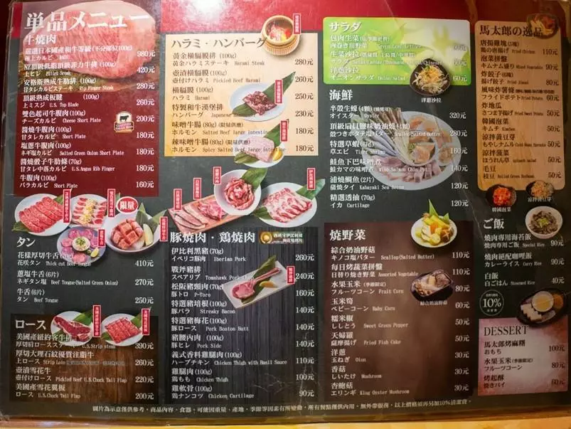 【馬太郎燒肉】目前供應699、799、899的燒肉套餐,給您最豐富的燒肉套餐,