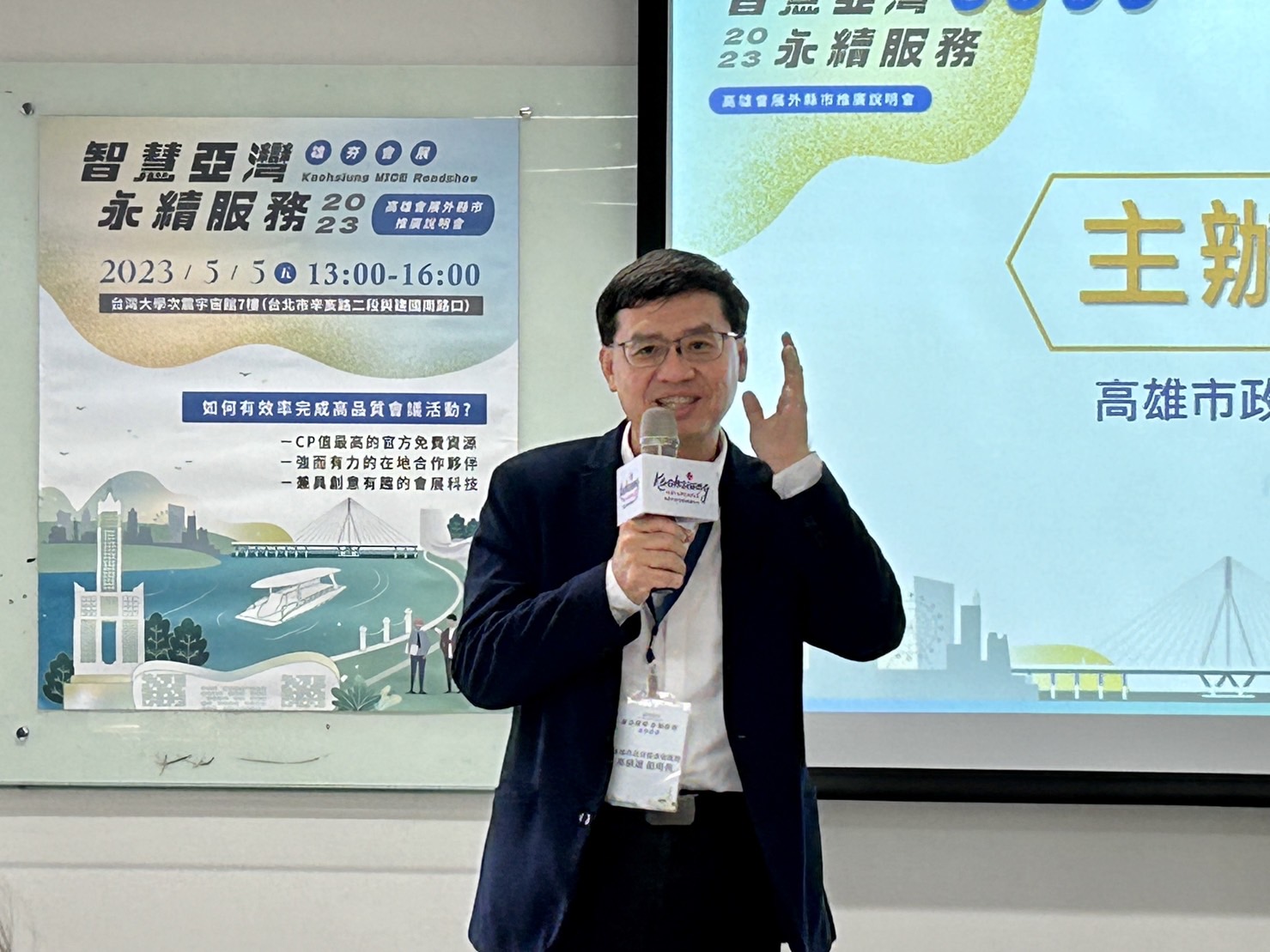 後疫情國境開放、百業復甦,高雄市政府經發局為活絡會展產業,昨(5)首度前進台灣大學舉辦「雄夯會展」推廣說明會,除有會展辦公室說明服務與環境外,亦邀請高雄展覽館、承億酒店、光時代等高雄會展聯盟成員介紹特色,主打優質服務與AR等創新科技招商,吸引近30家公協學會、主辦單位與專業會展活動公司業者參與。