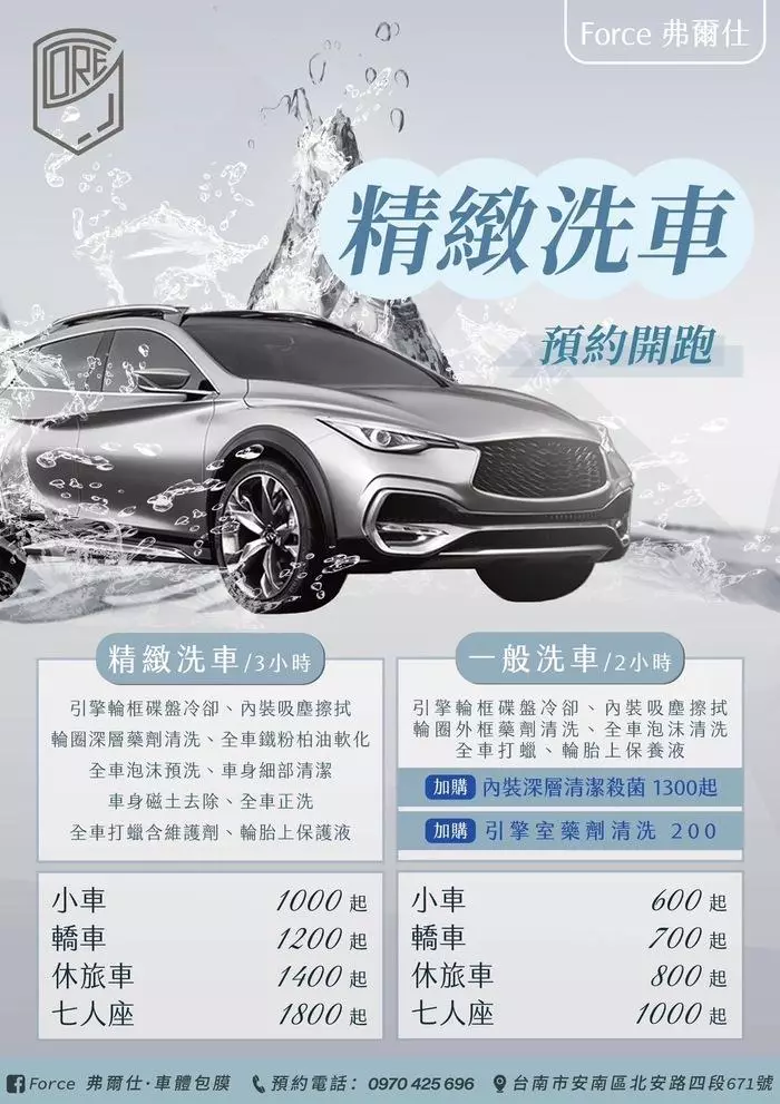 【Force弗爾仕車體包膜】2023年新增精緻洗車、一般洗車的服務